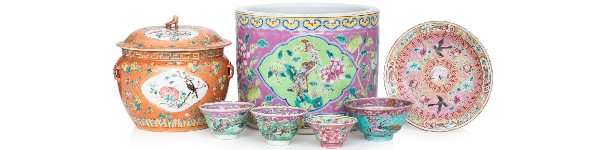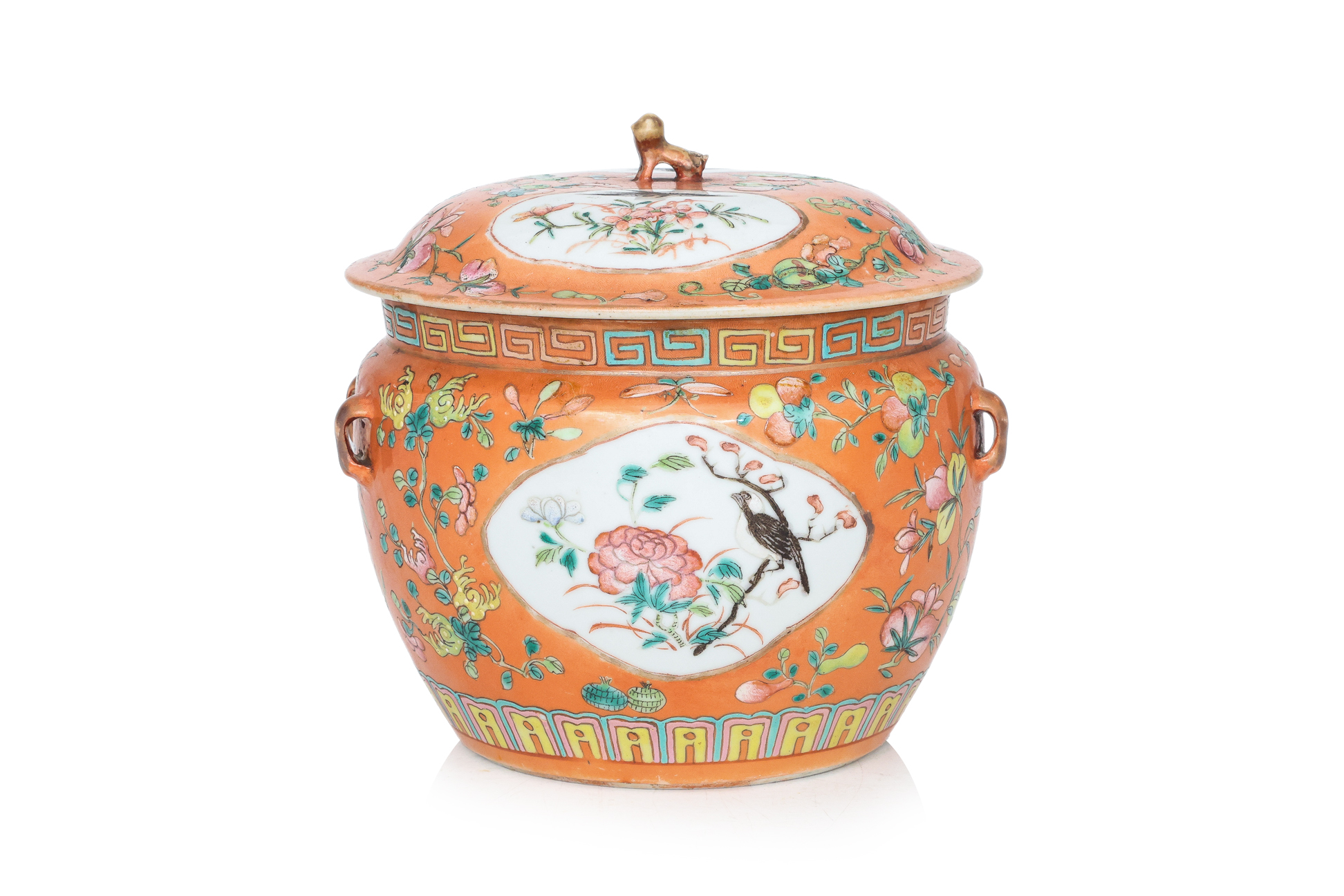 A FAMILLE ROSE CORAL GROUND KAMCHENG