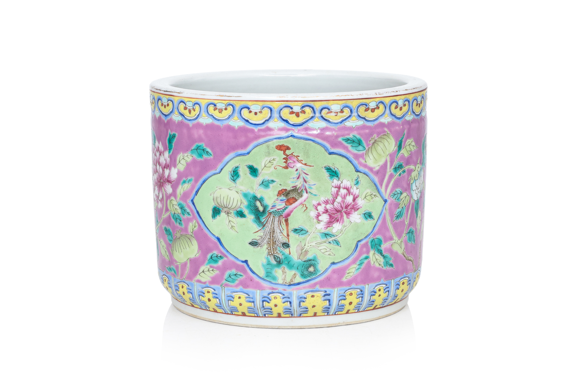 A FAMILLE ROSE PINK GROUND PHOENIX AND PEONY JOSS STICK HOLDER