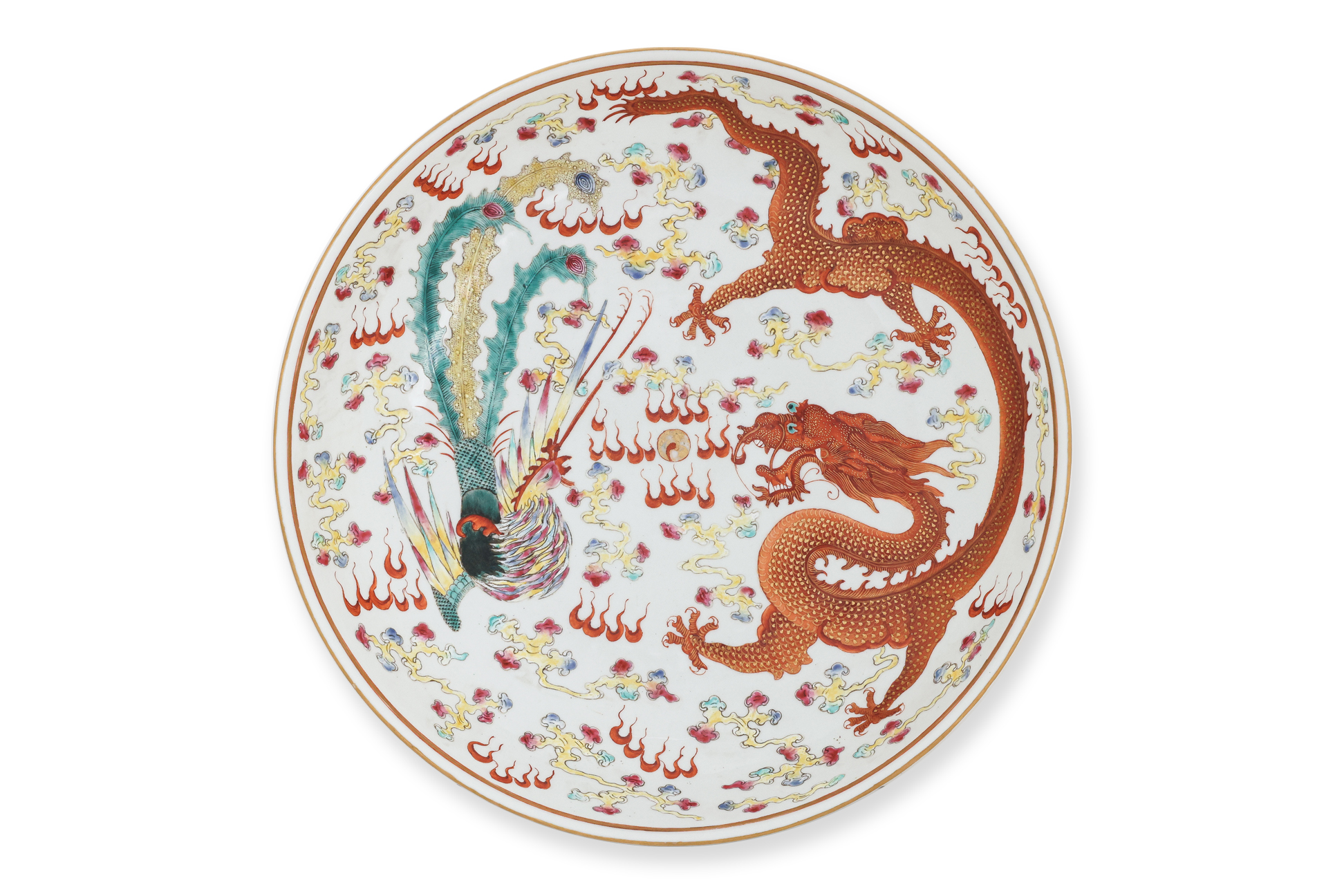 A fine famille rose dragon and phoenix wedding basin sells for $115,700 SGD inclusive of buyer's premium