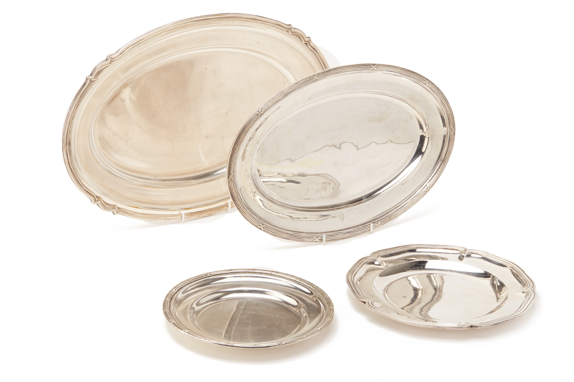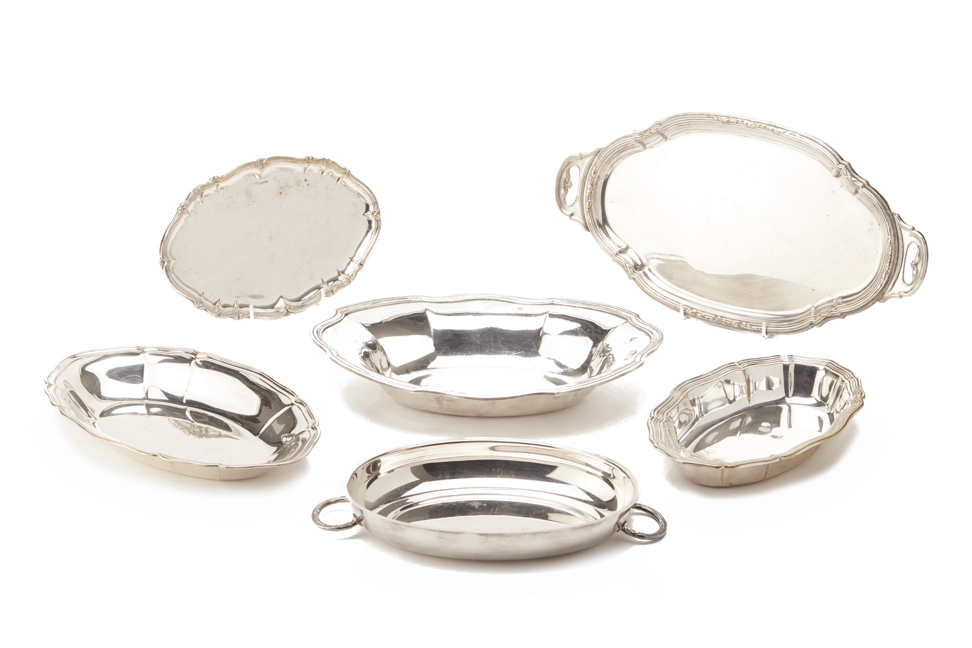 A GROUP OF OVAL SILVER PLATED DISHES AND TRAYS