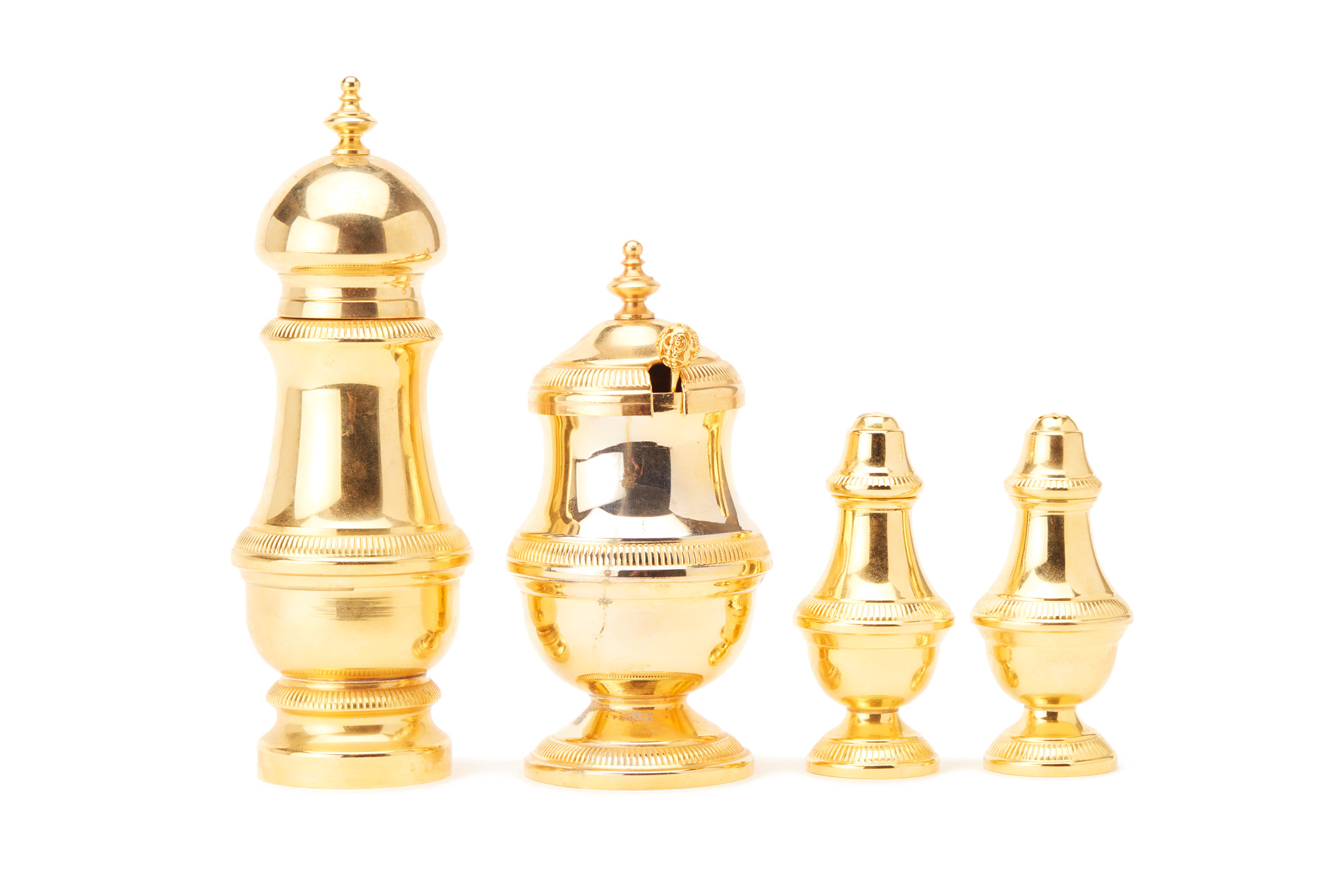 A FRENCH GILT-METAL FOUR-PIECE CONDIMENT SET
