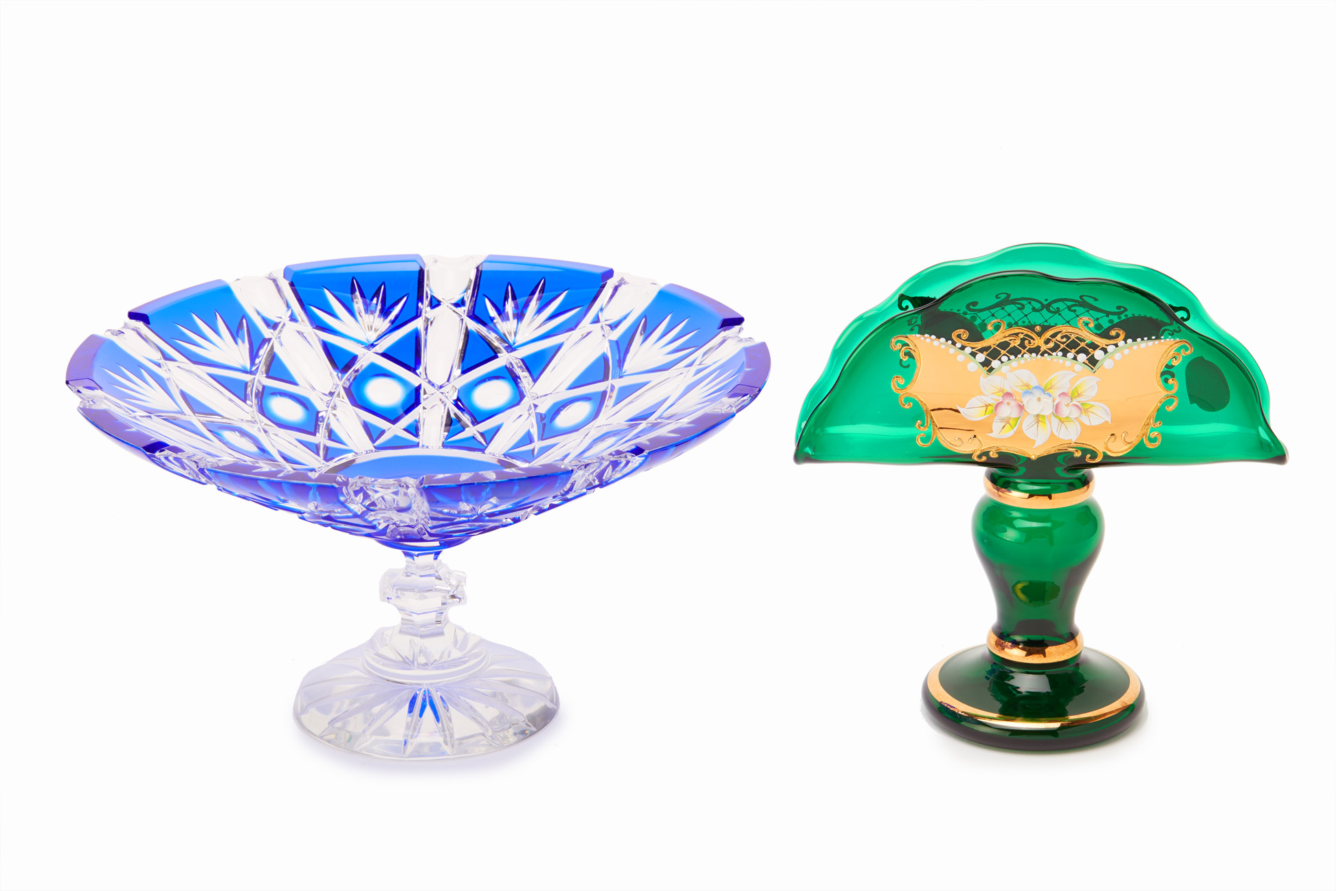 A BOHEMIA CRYSTAL PEDESTAL DISH & A NAPKIN HOLDER