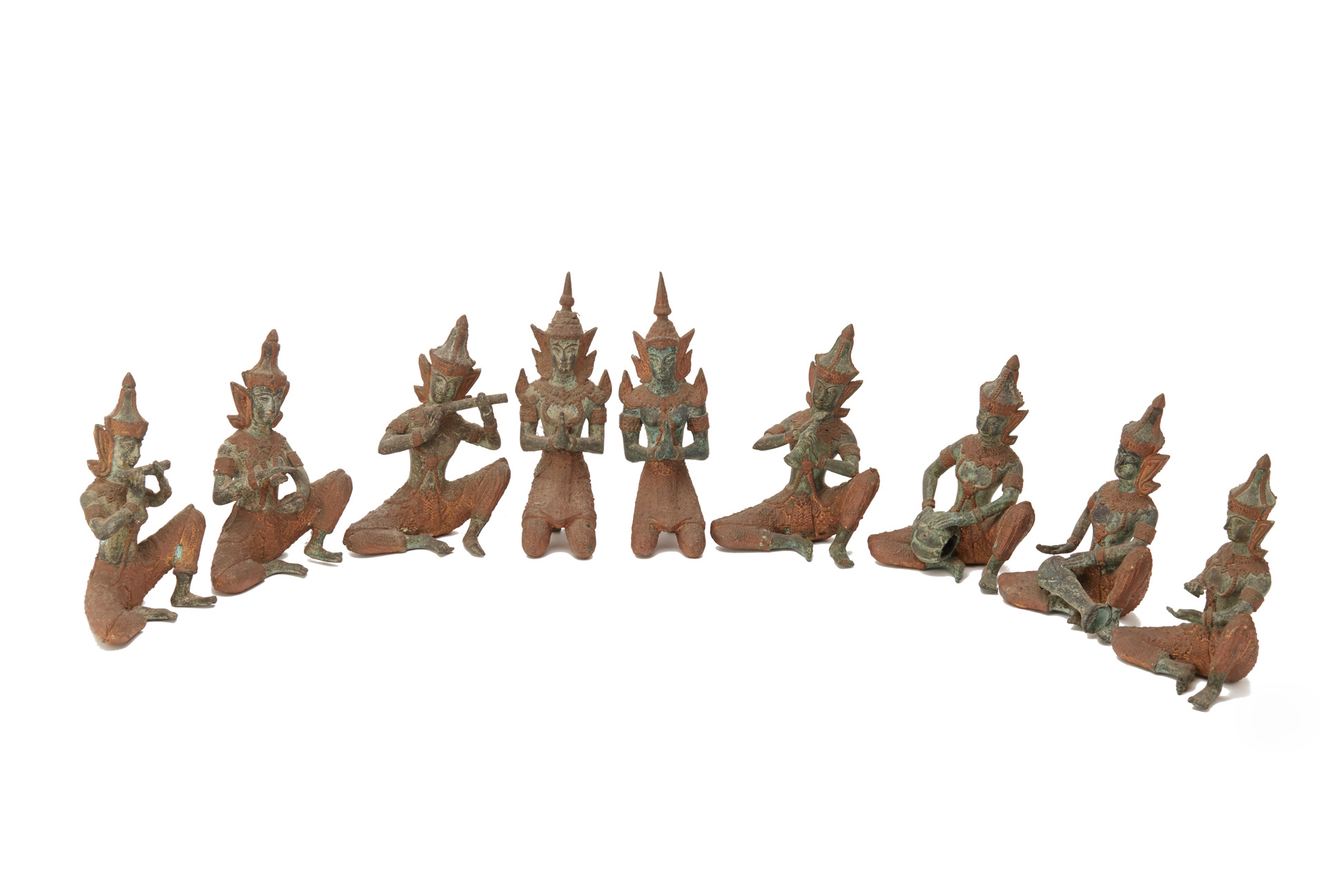 A GROUP OF 9 THAI BRONZE MUSICIANS FIGURES