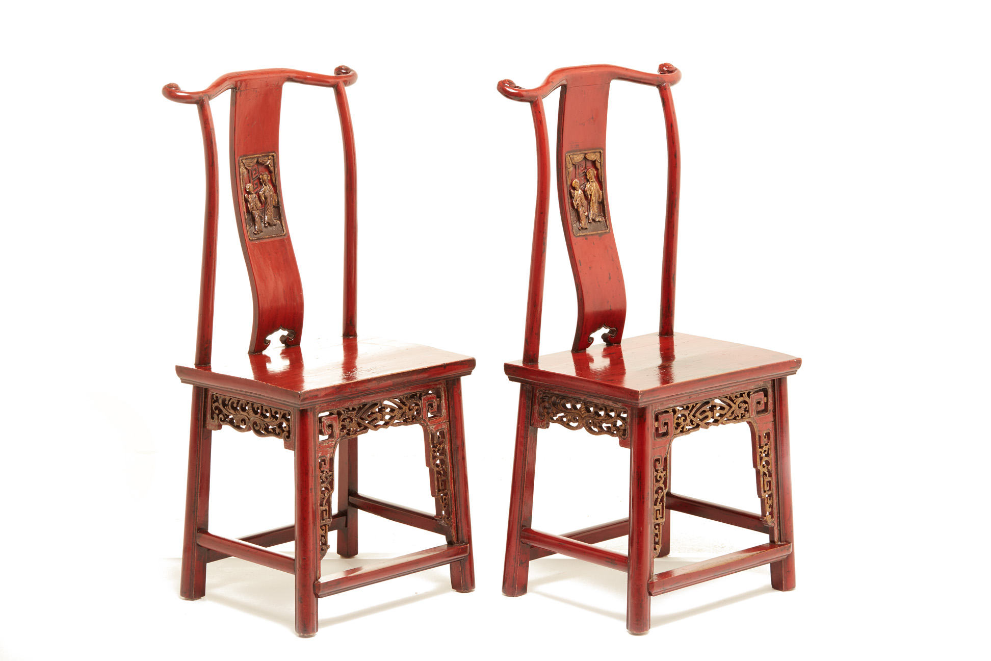 A PAIR OF CHINESE RED PAINTED CHAIRS