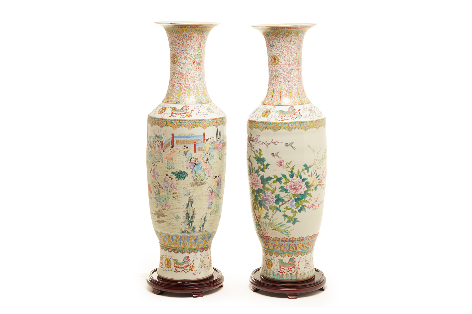 TWO VERY LARGE FAMILLE ROSE PORCELAIN FLOOR VASES