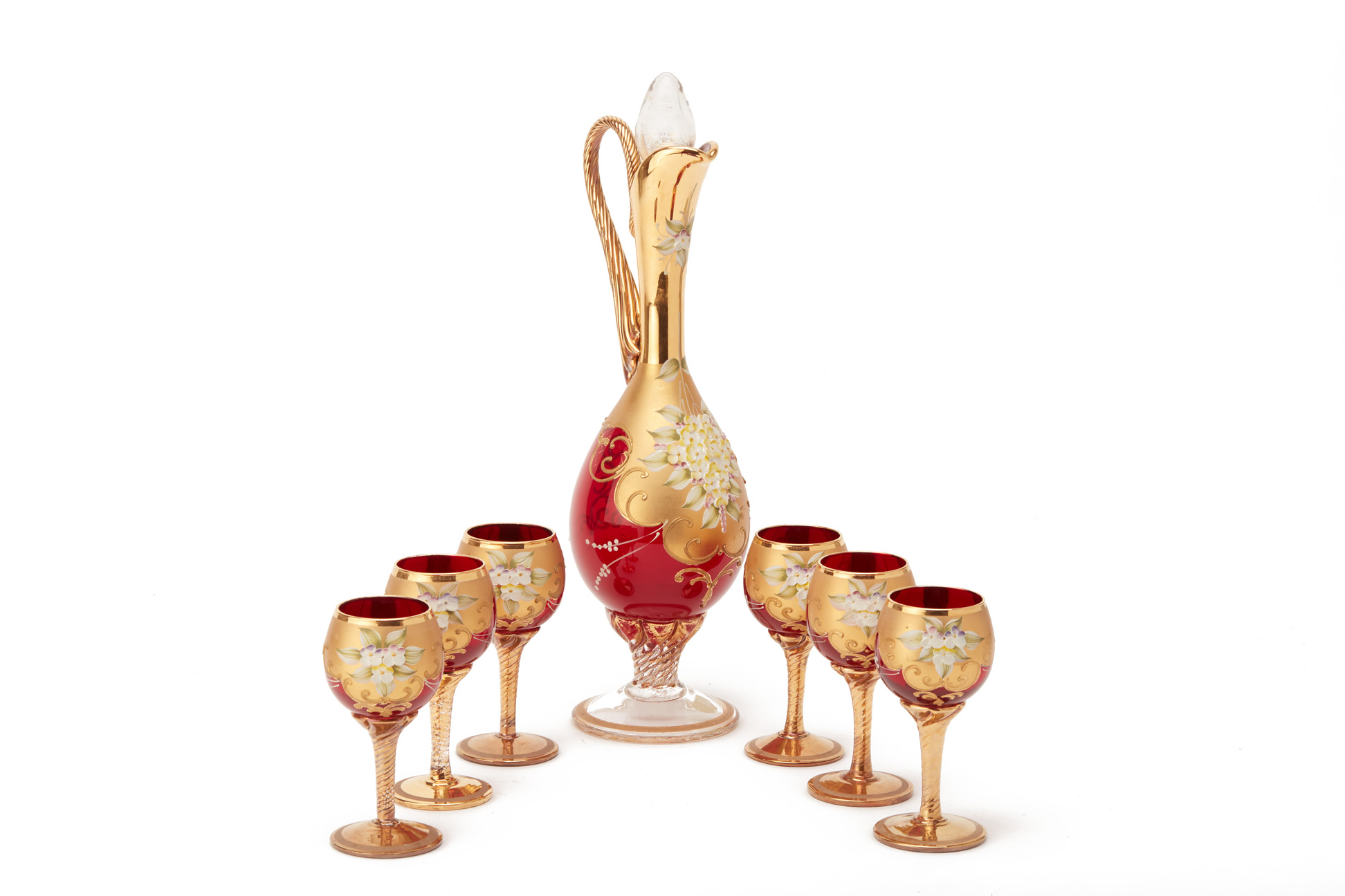 A MURANO GILT DECORATED GLASS WINE SERVICE