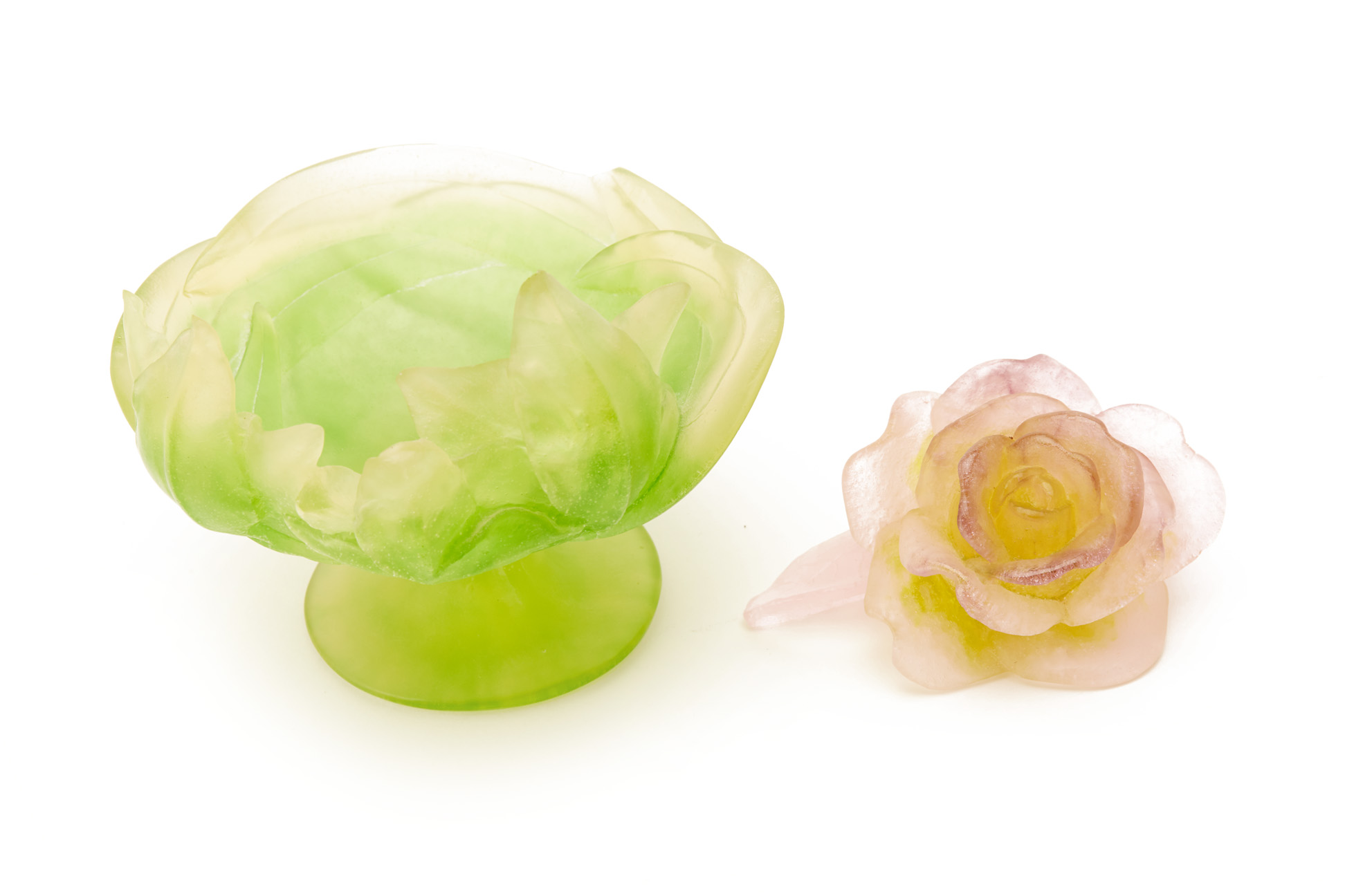 TWO DAUM PATE DE VERRE FLORAL ORNAMENTS