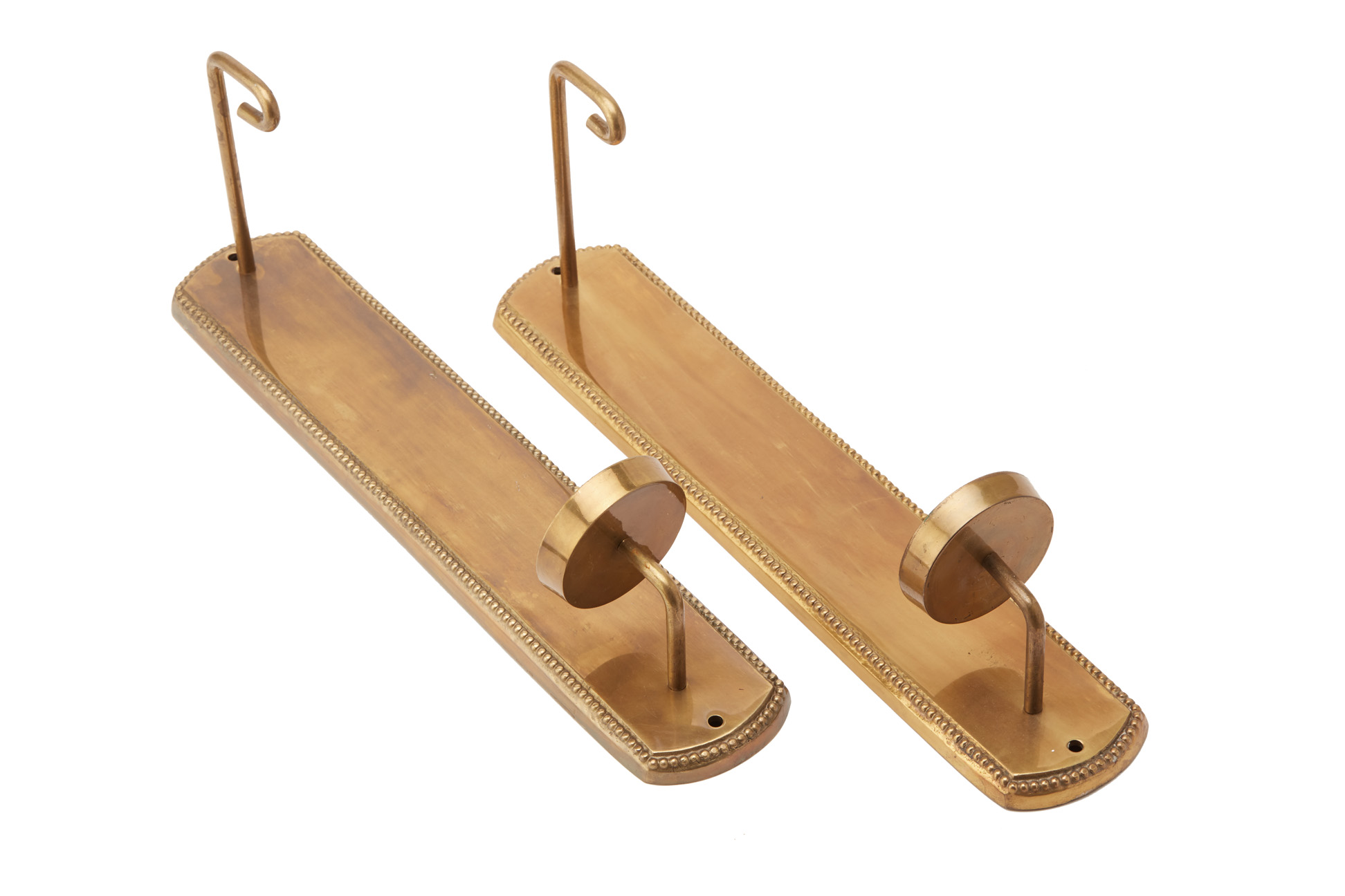 A PAIR OF BRASS CANDLESTICK WALL APPLIQUES