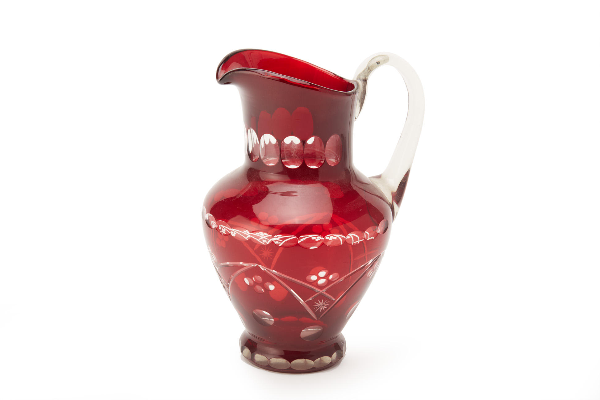 A RUBY FLASHED AND CUT GLASS WATER JUG