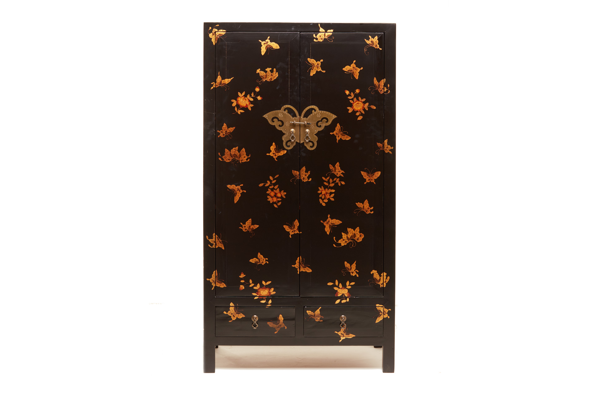 A CHINESE BLACK LACQUER AND GOLD BUTTERFLY CABINET