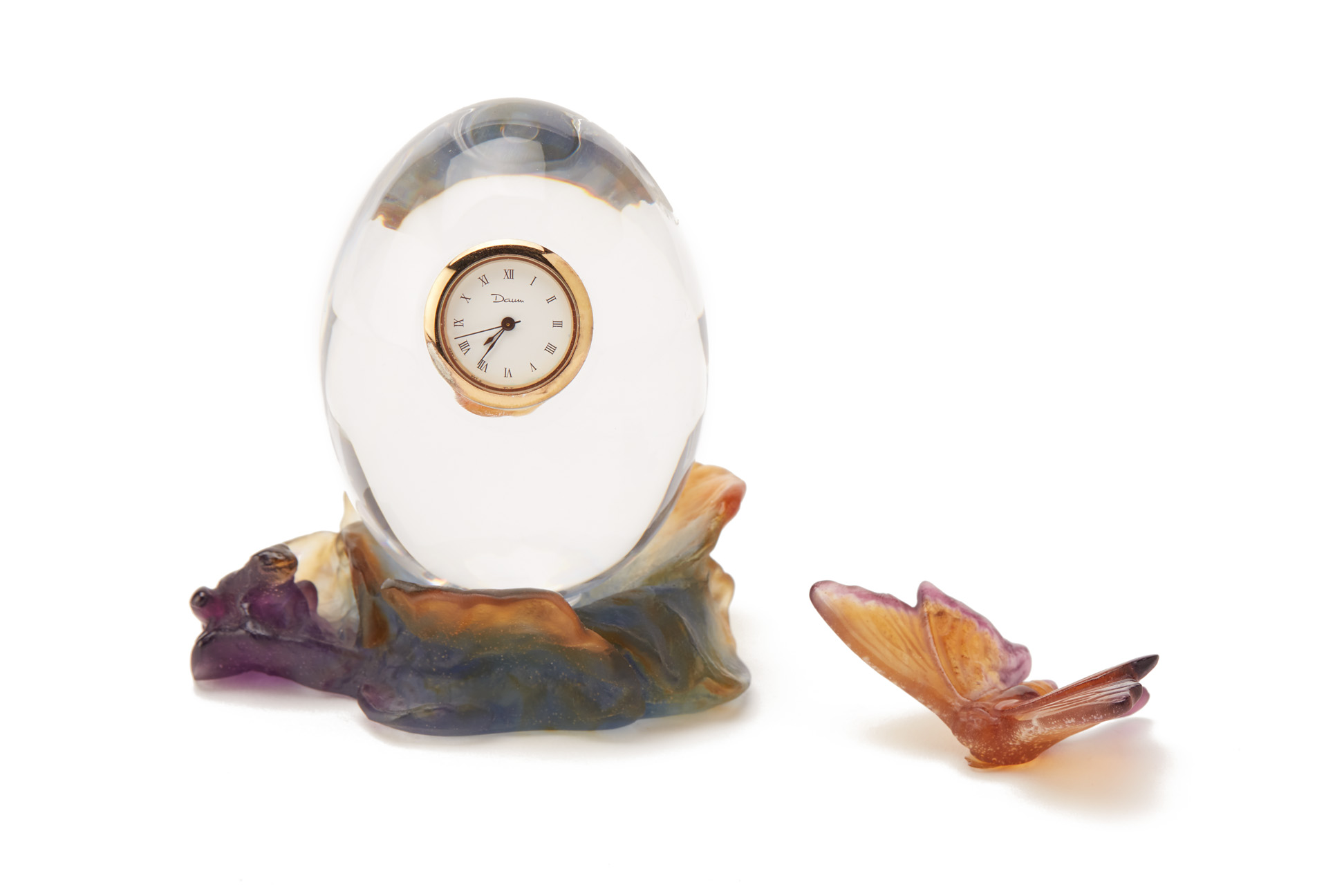 A DAUM PATE DE VERRE AND CLEAR GLASS CLOCK
