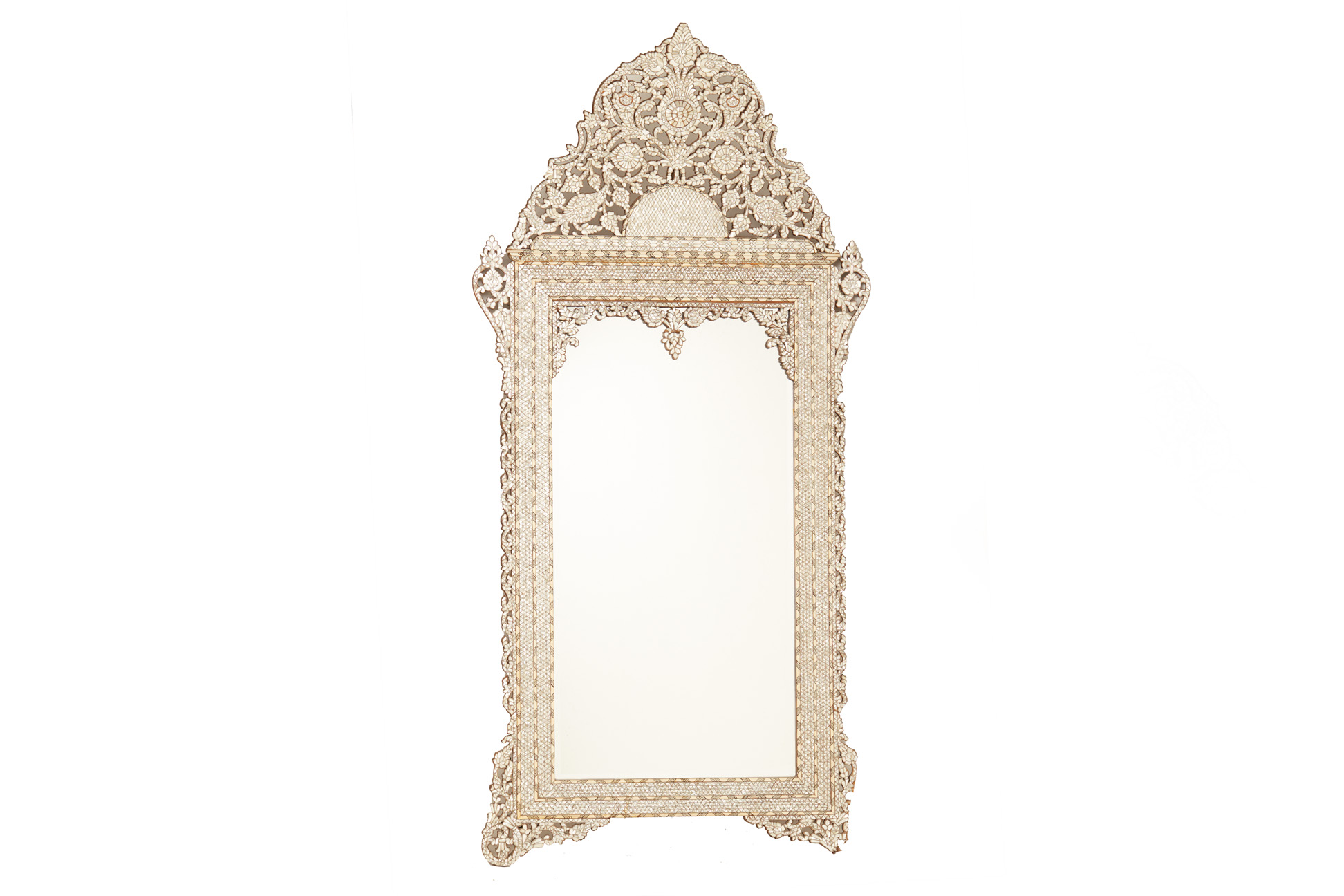 A LARGE SYRIAN MOTHER OF PEARL AND BONE INLAID MIRROR