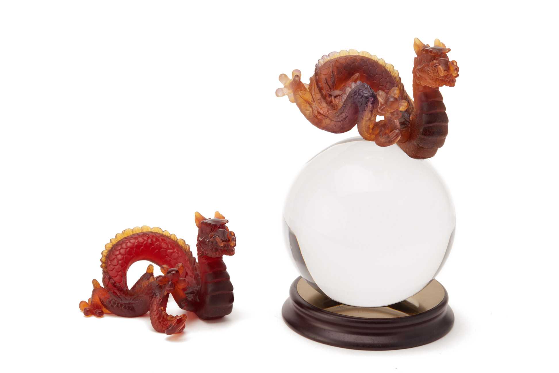 TWO DAUM PATE DE VERRE GLASS MODELS OF DRAGONS
