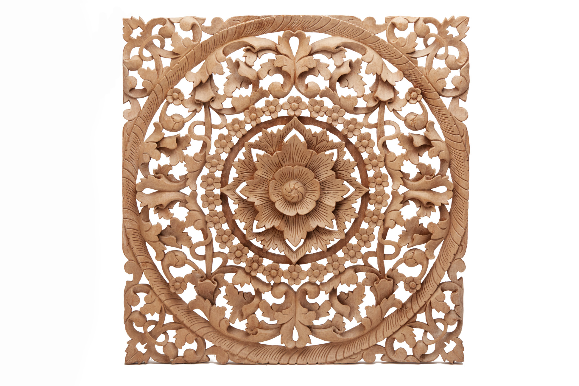 A BURMESE TEAK CARVED SQUARE PANEL