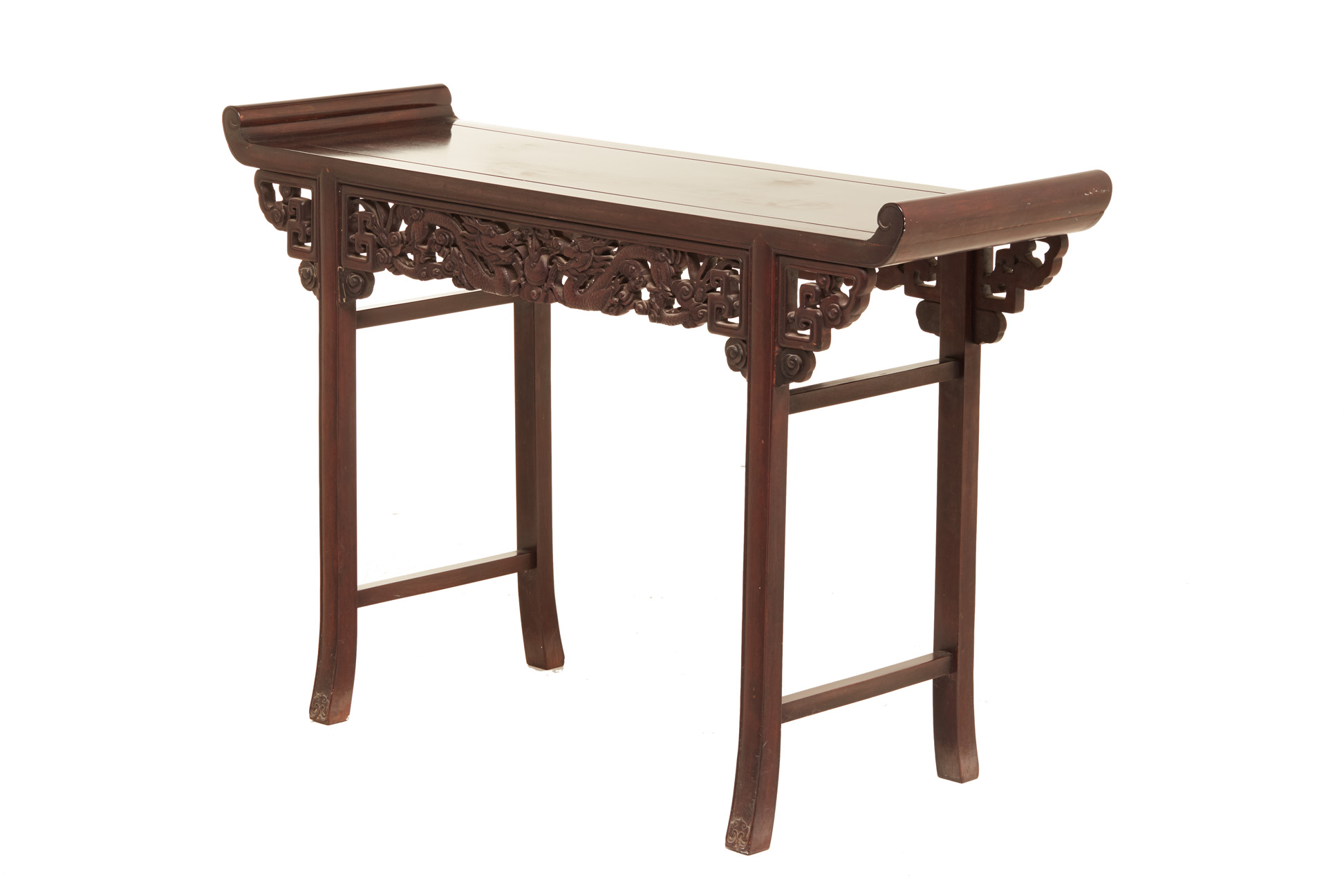 A CARVED HARDWOOD ALTAR FORM CONSOLE TABLE