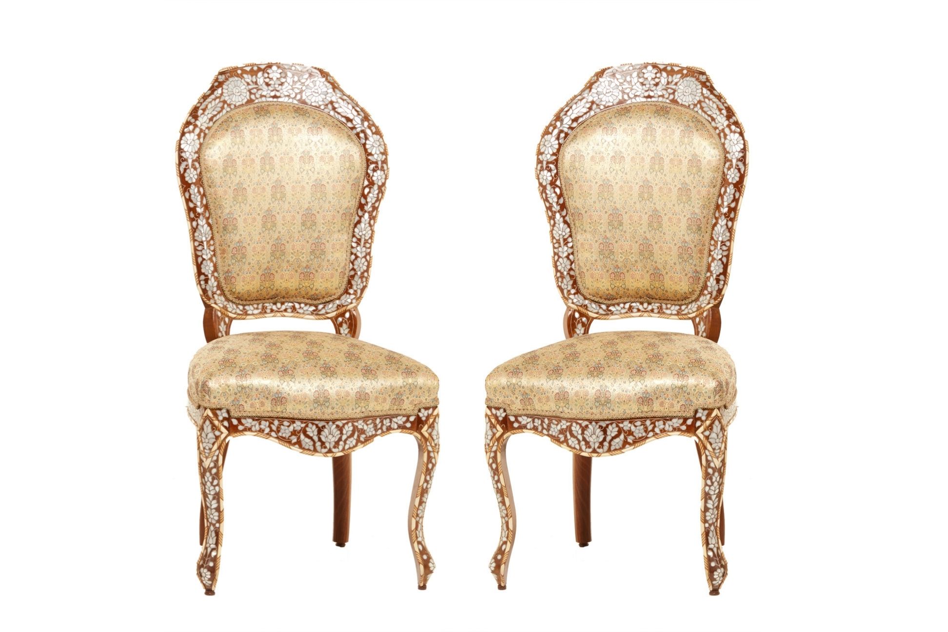 A PAIR OF SYRIAN MOTHER OF PEARL AND BONE INLAID SIDE CHAIRS