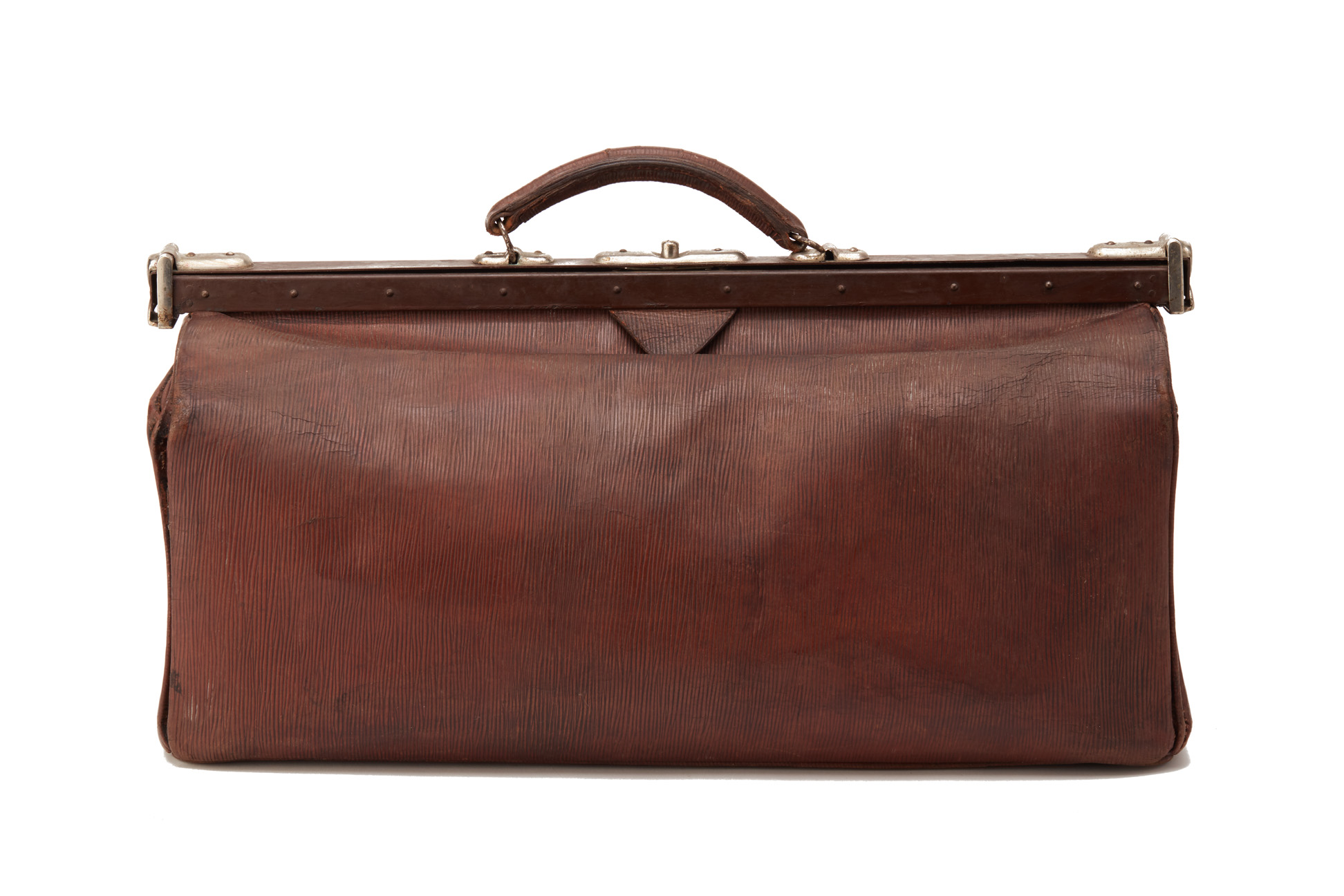 A LARGE VINTAGE BROWN LEATHER GLADSTONE BAG