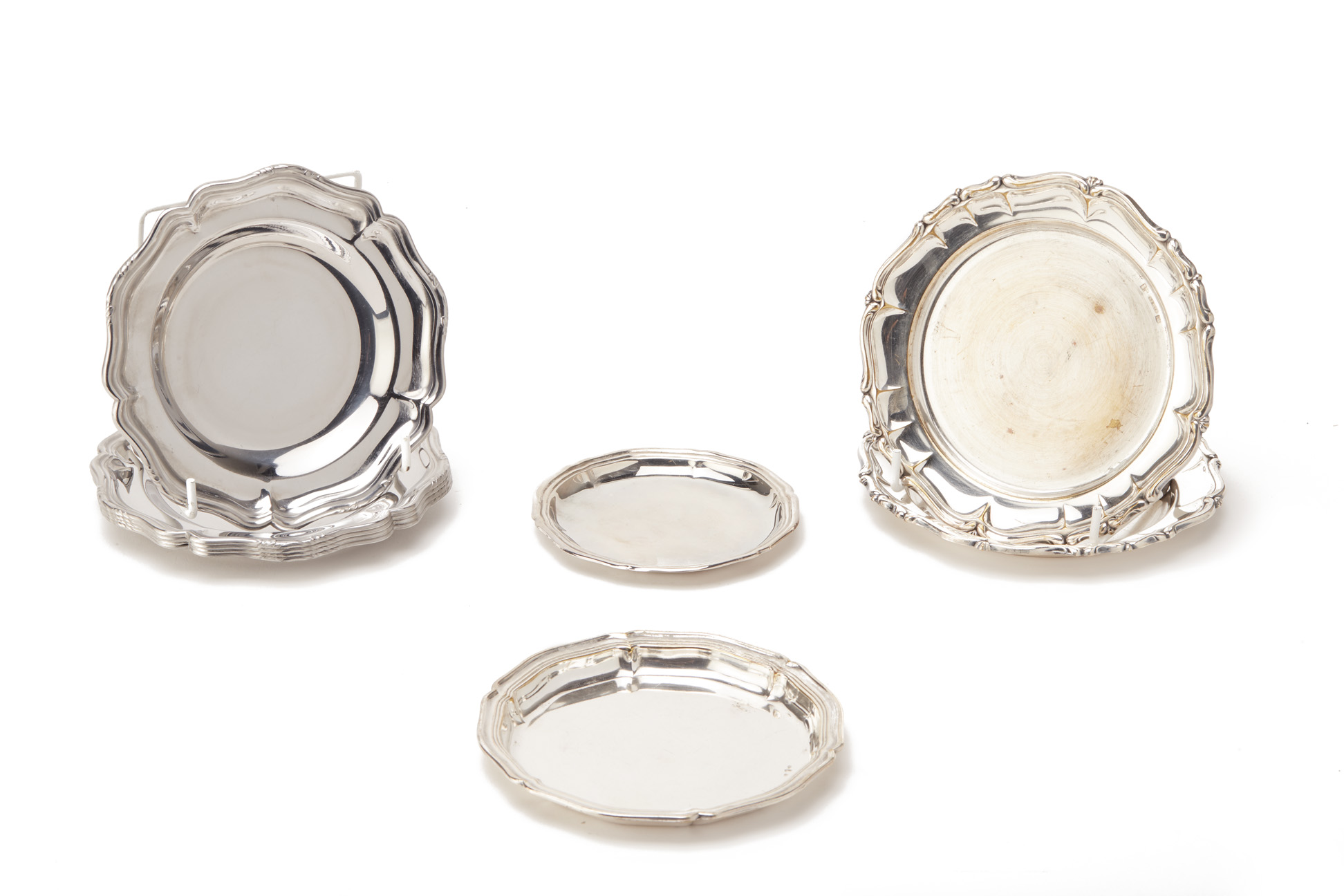 A GROUP OF VARIOUS SILVER PLATED COASTERS