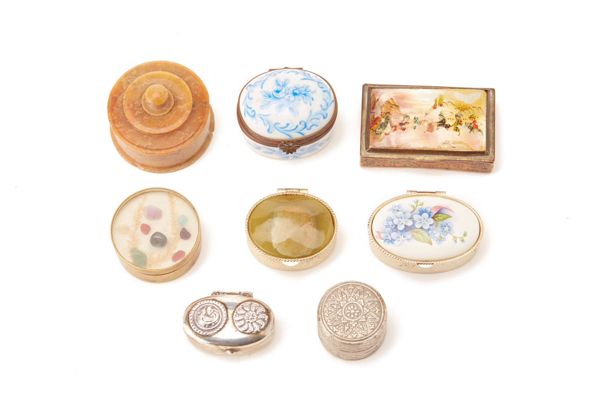A GROUP OF EIGHT SMALL PILL BOXES