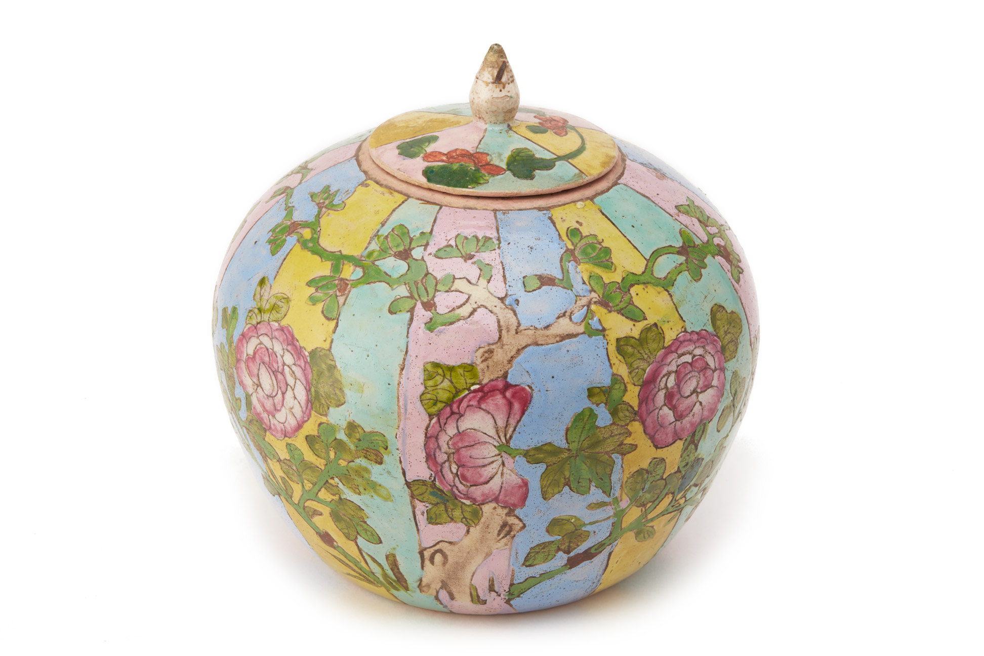 A POLYCHROME JAR AND COVER