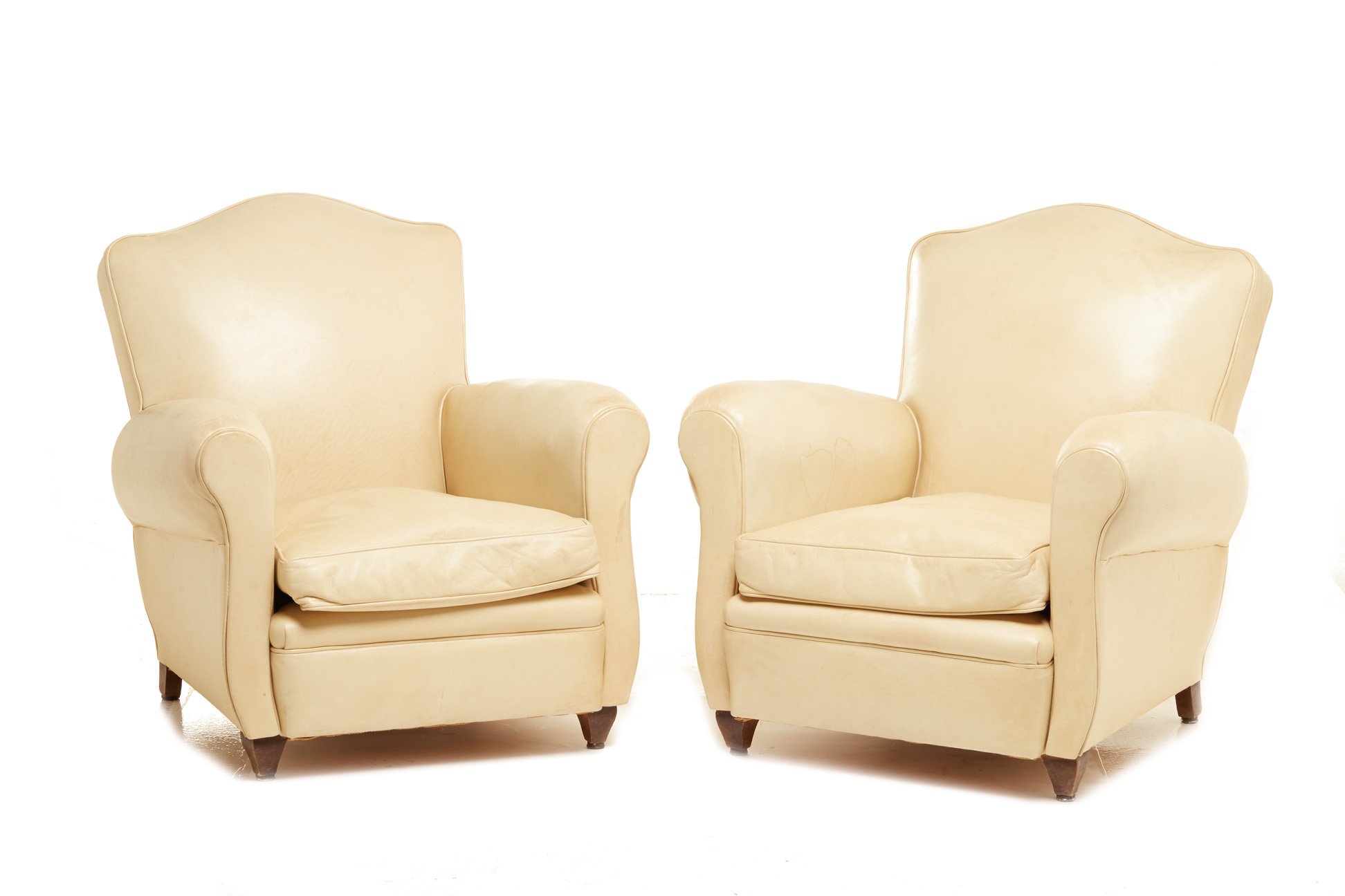 A PAIR OF CREAM LEATHER CLUB ARMCHAIRS