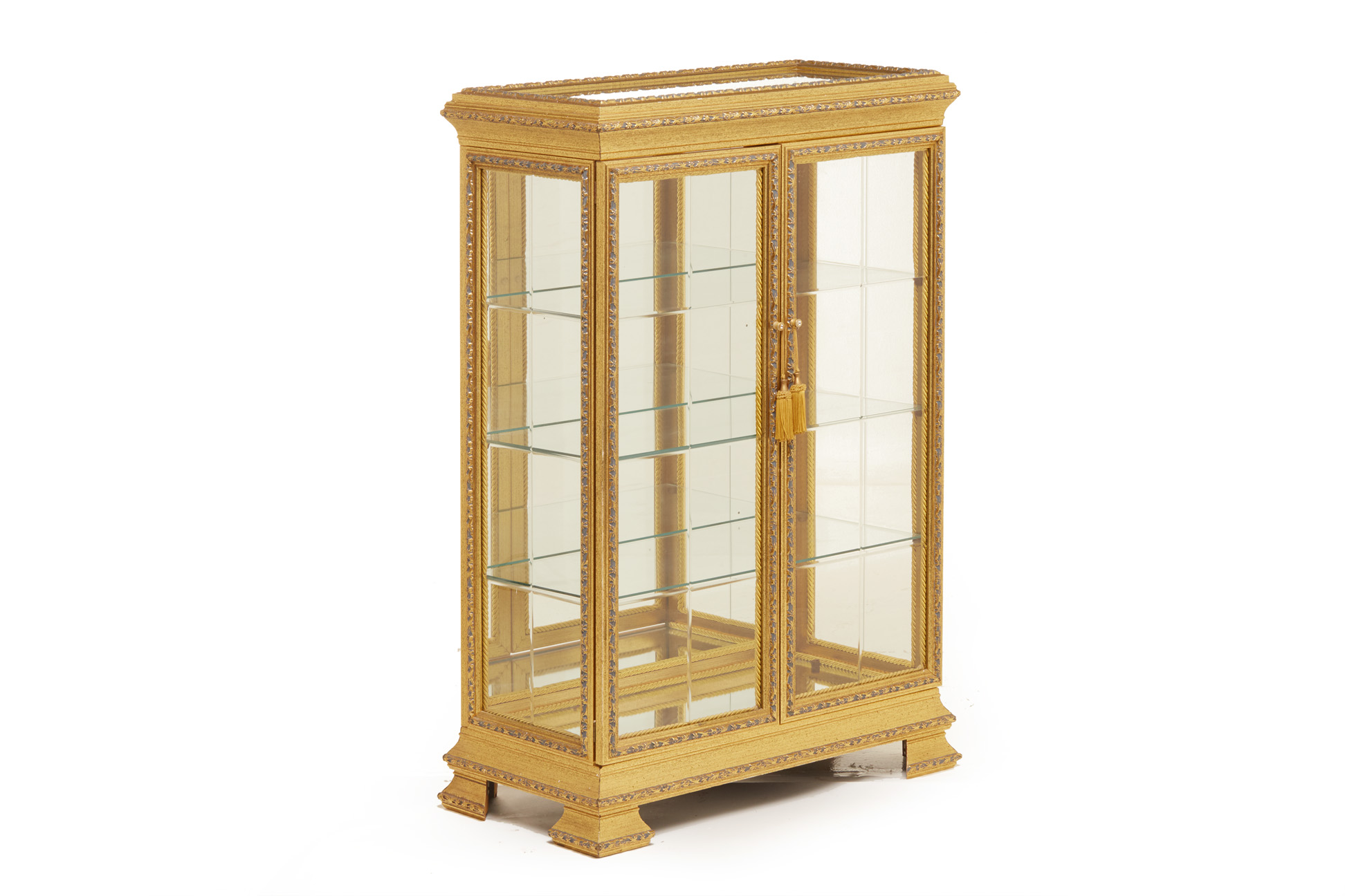 A GLAZED GILT DISPLAY CABINET