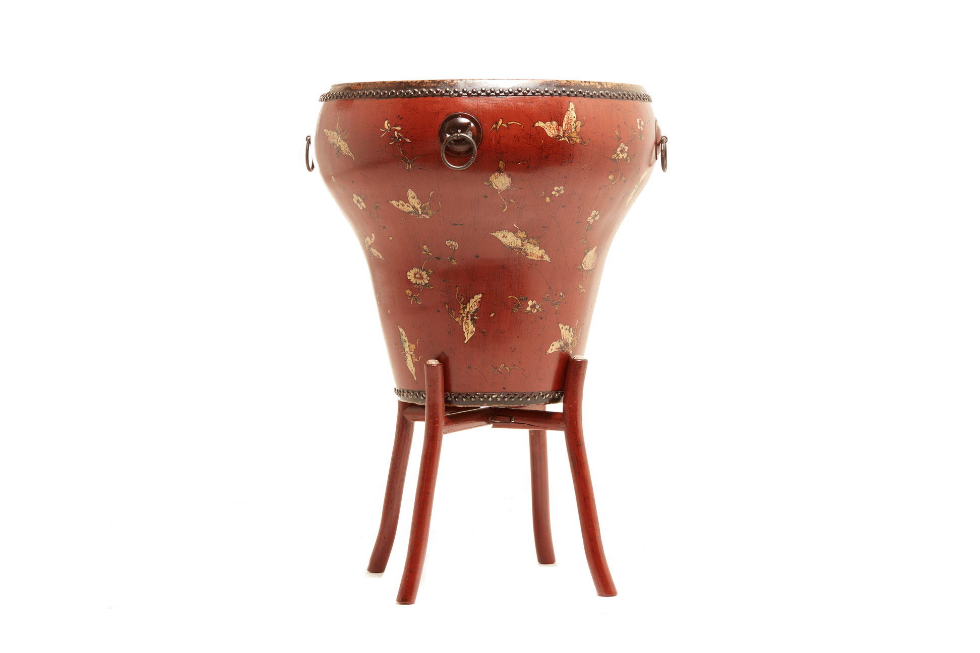 A CHINESE PAINTED DRUM SIDE TABLE