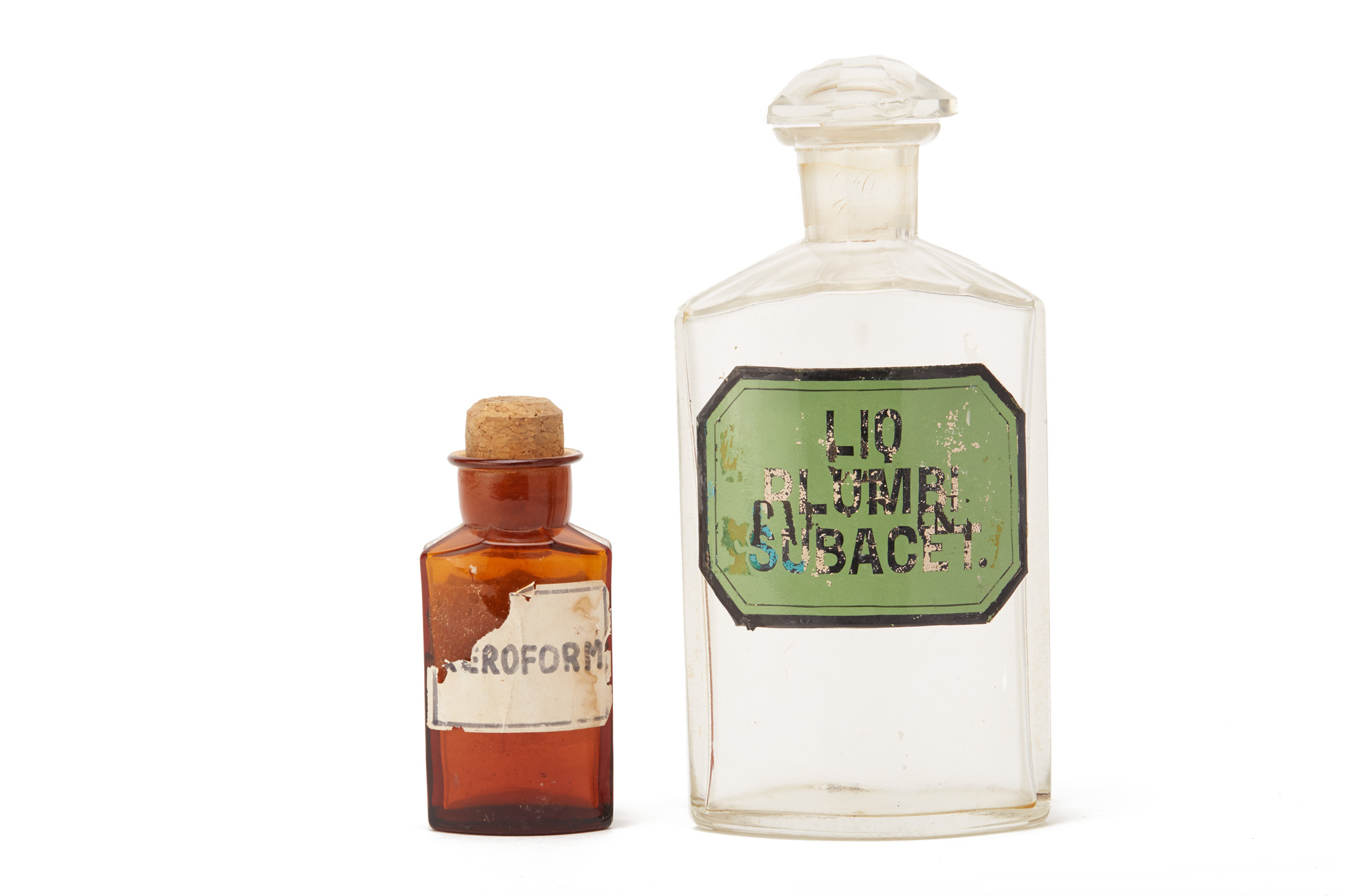 TWO APOTHECARY GLASS BOTTLES