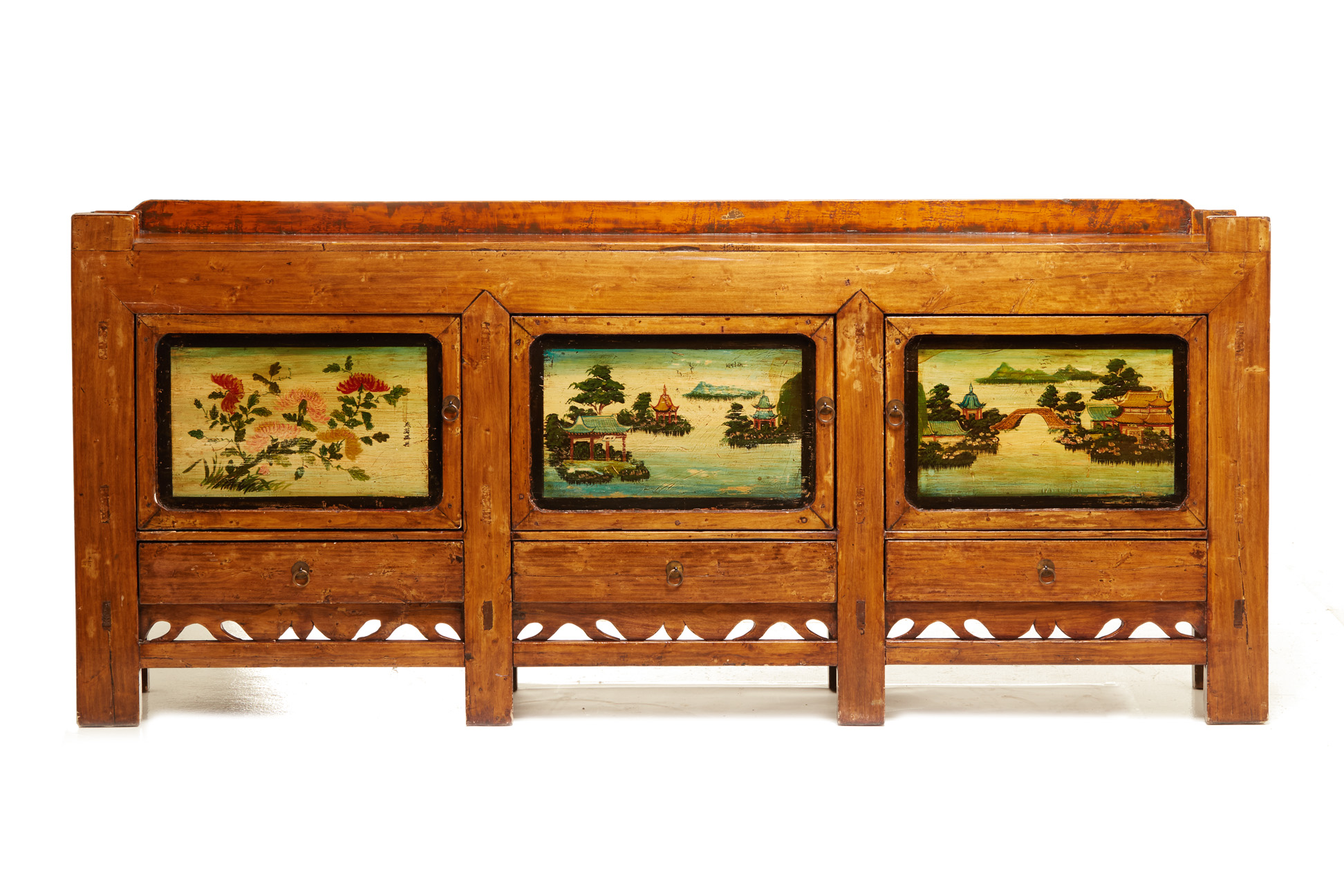 A LARGE CHINESE PAINTED SIDEBOARD
