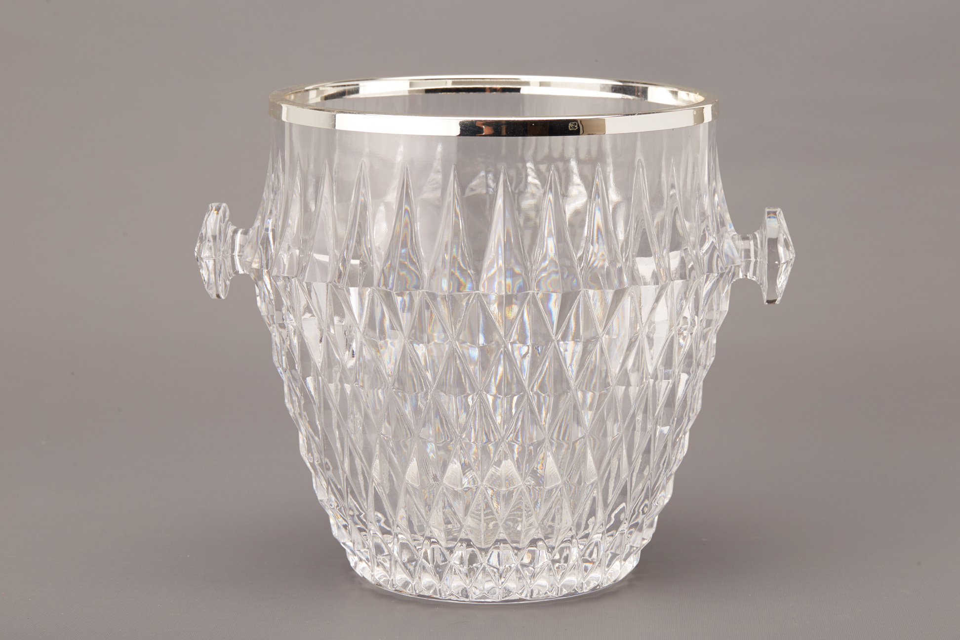 A SILVER PLATE MOUNTED GLASS WINE COOLER