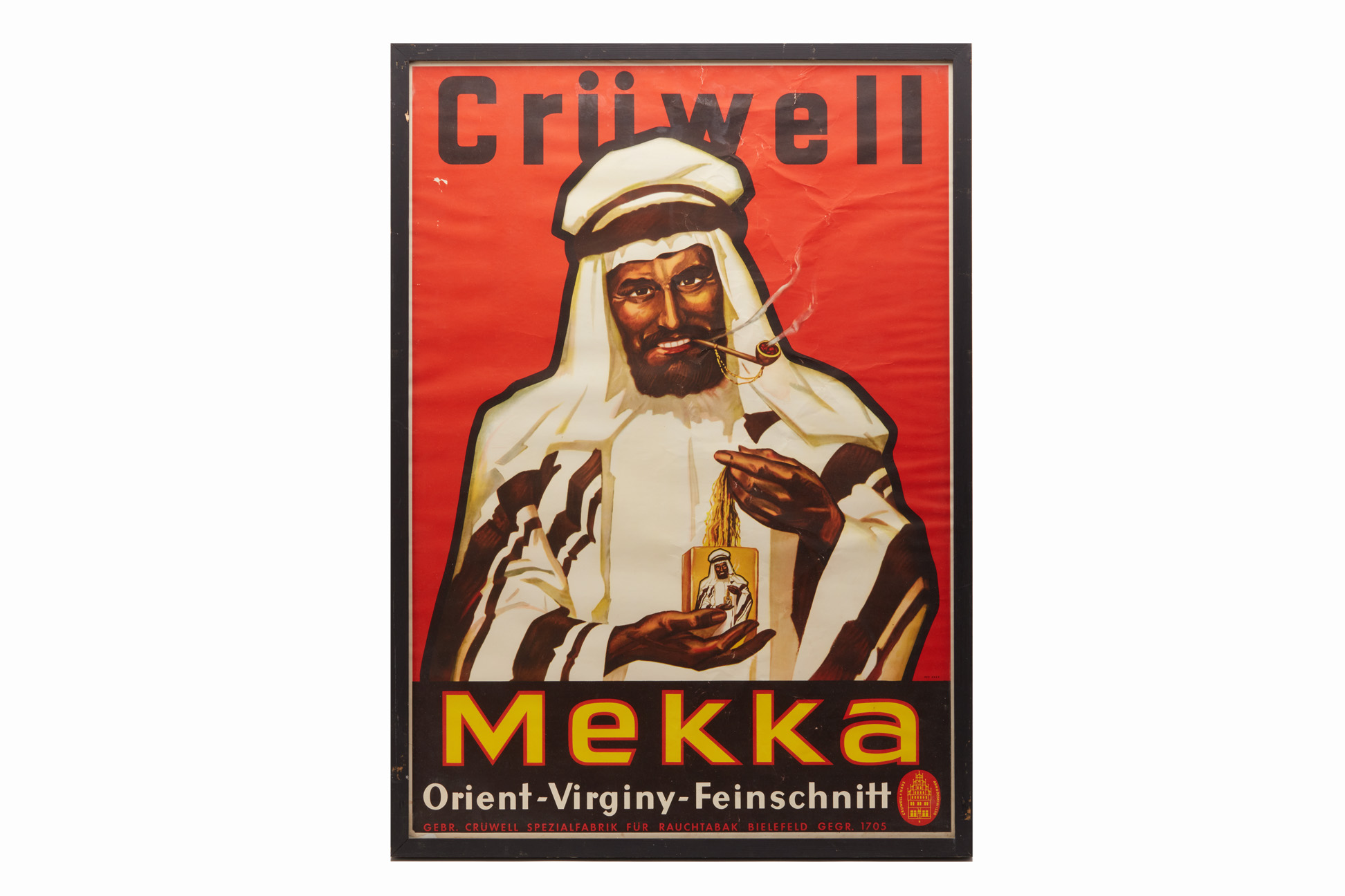 A VINTAGE CRUWELL MEKKA CIGARETTES ADVERTISING POSTER