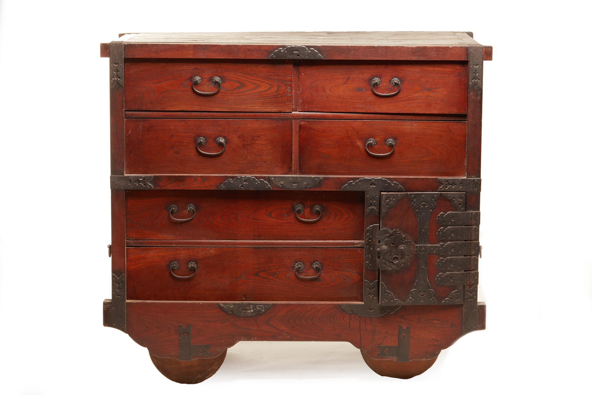 A JAPANESE KURUMA TANSU (WHEEL CHEST WITH LOCK PLATE)