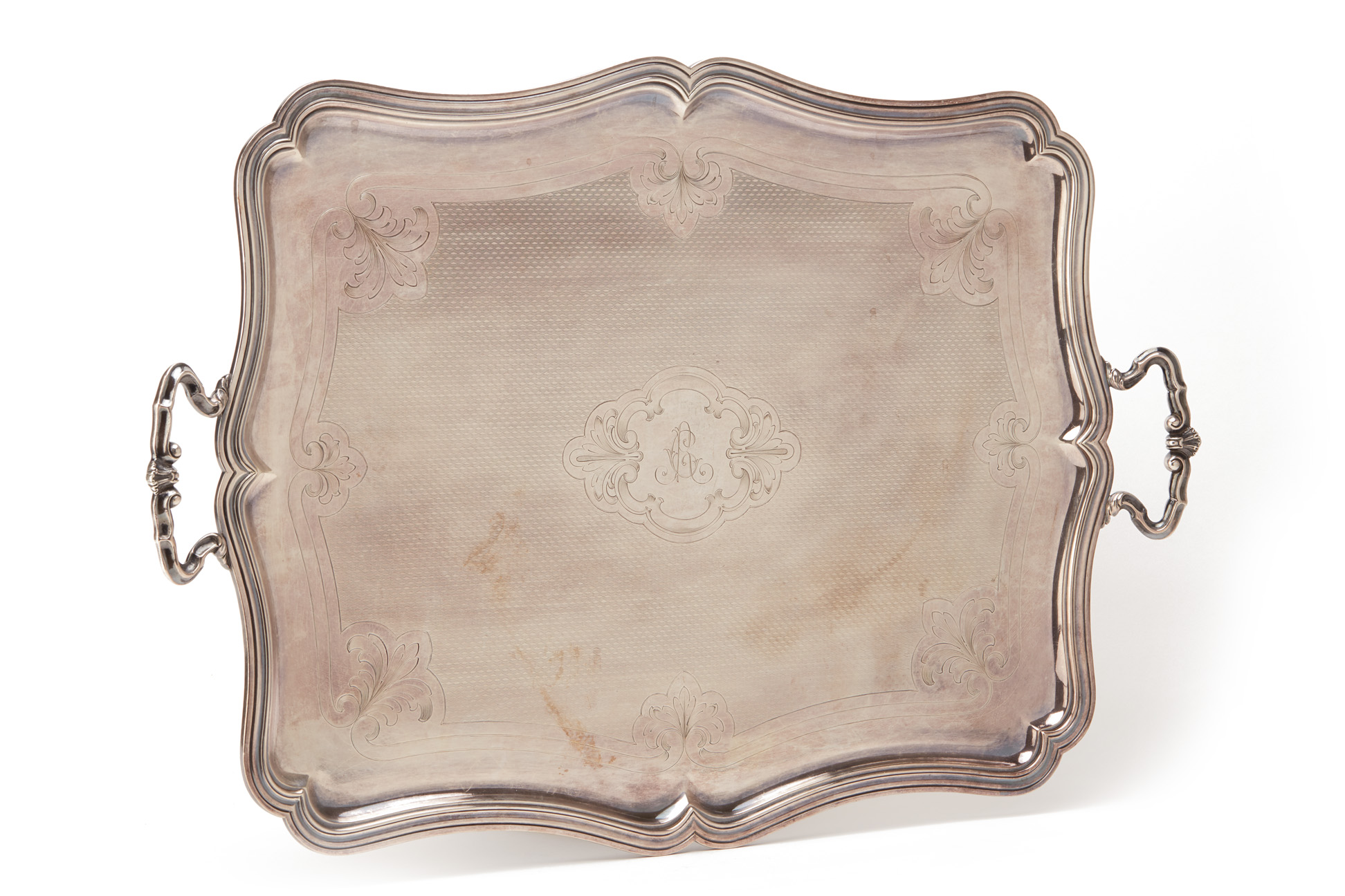 A LARGE ITALIAN SILVER PLATED TWIN HANDLED TRAY