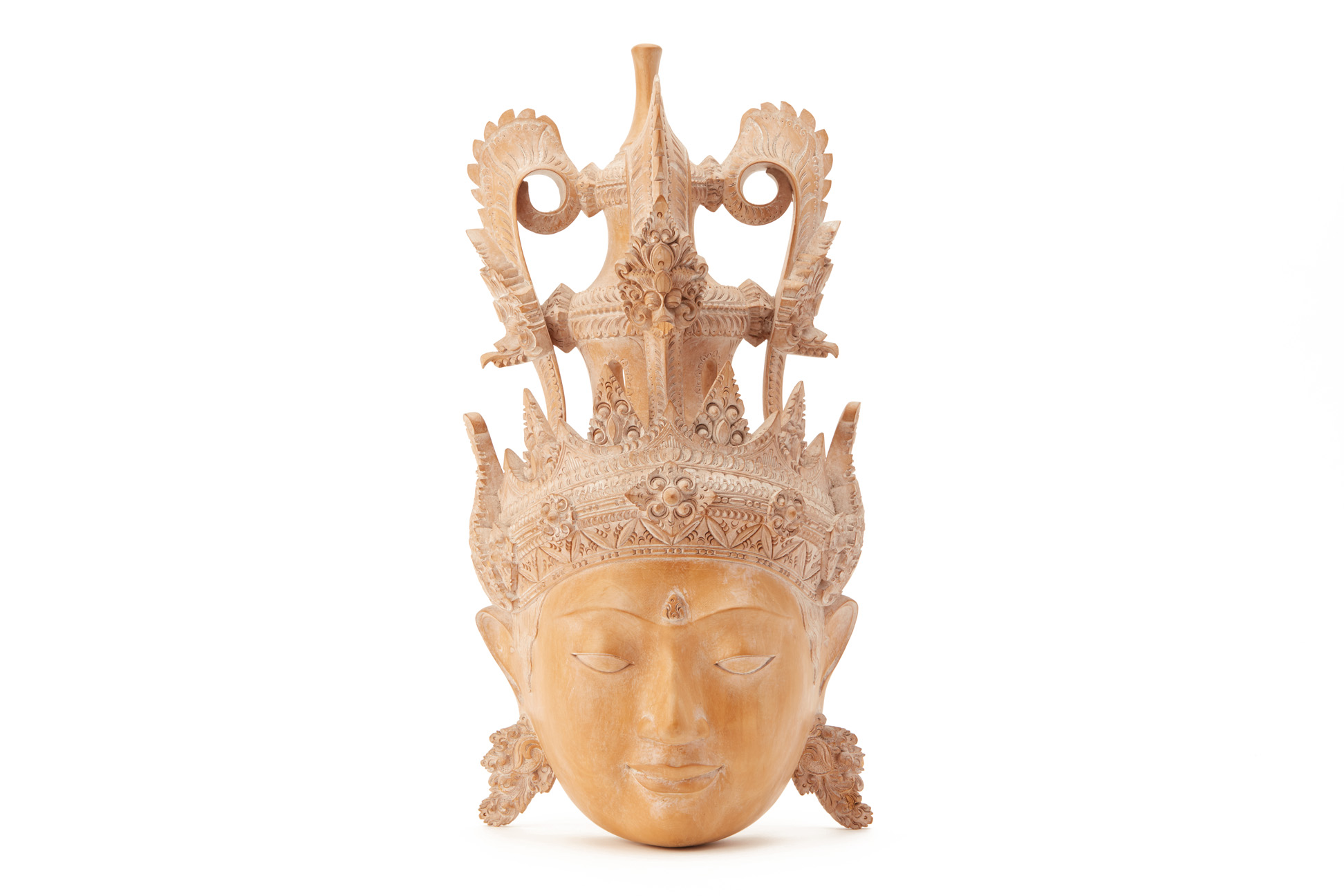 A BALINESE HIBISCUS WOOD CARVING