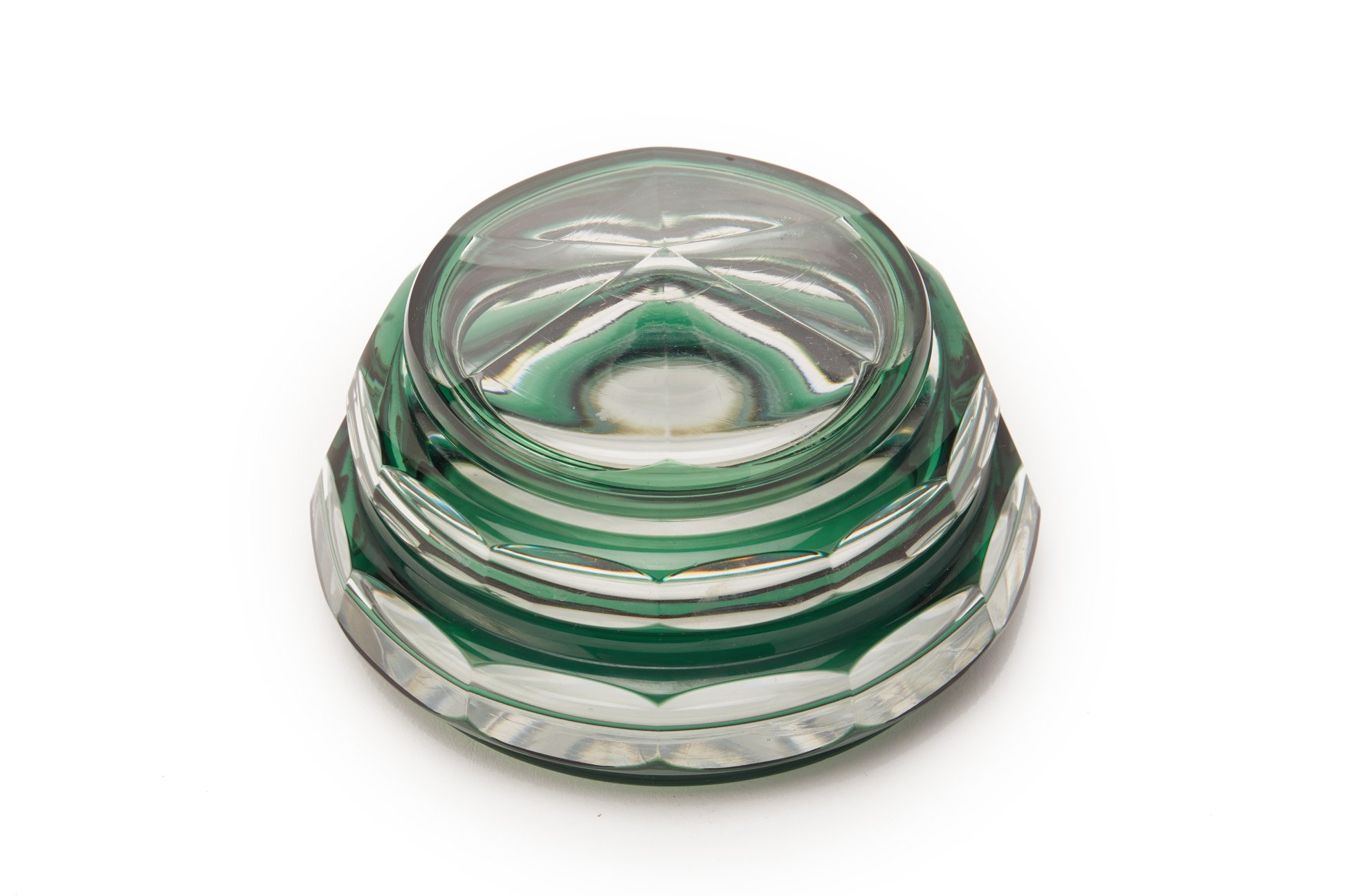 A GREEN FLASHED AND CLEAR GLASS POWDER BOX