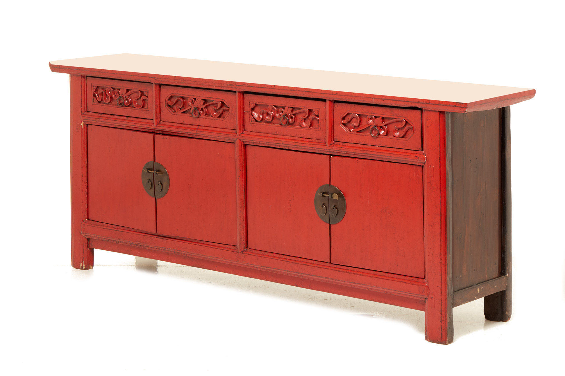 A CHINESE RED LACQUER SIDEBOARD