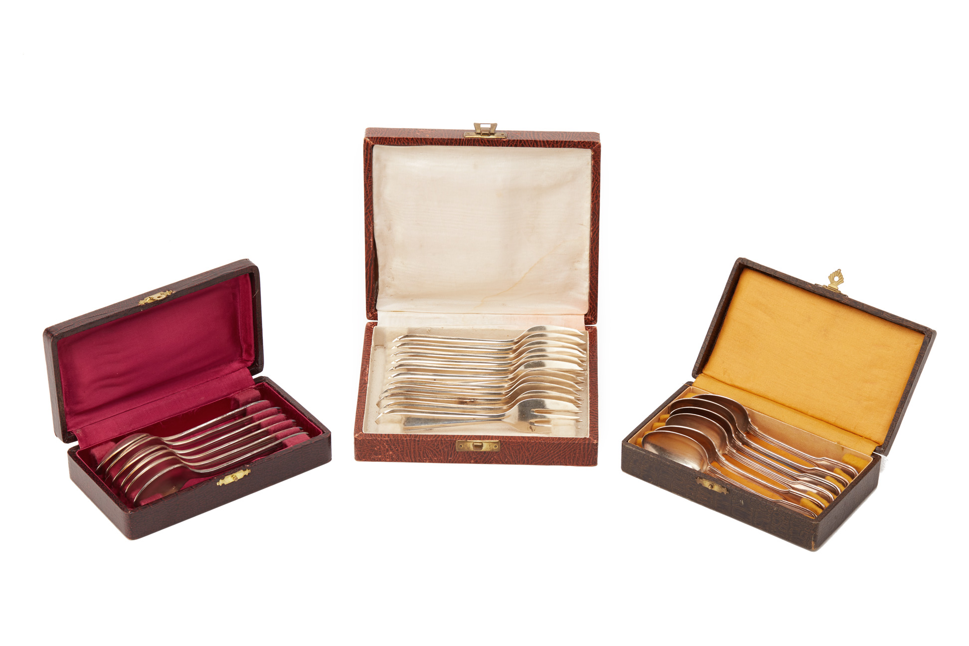 THREE SETS OF SILVER PLATED FORKS AND SPOONS