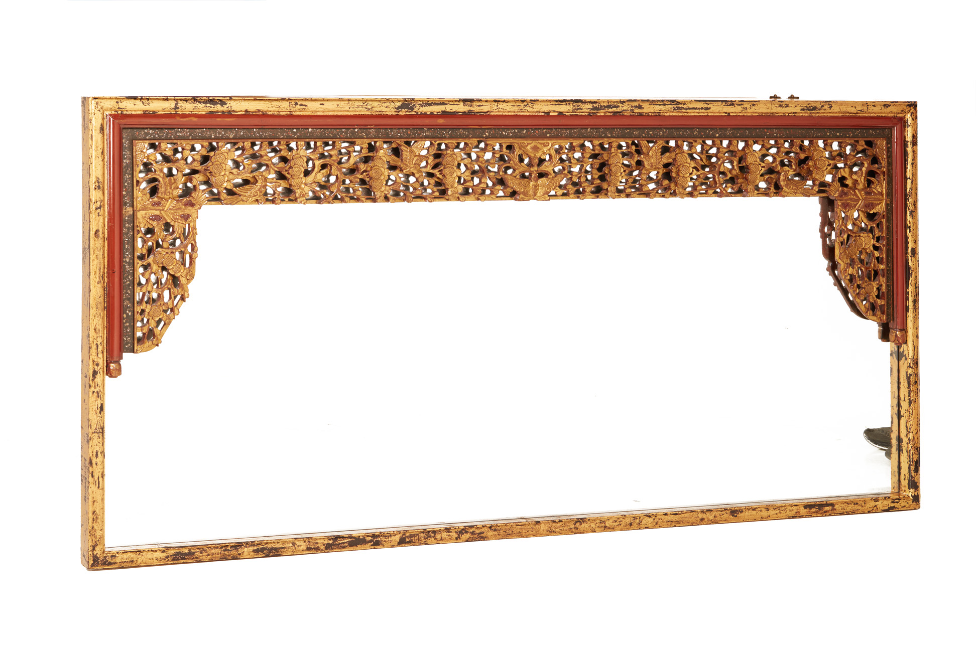 A LARGE GILT MIRROR WITH PERANAKAN CARVINGS