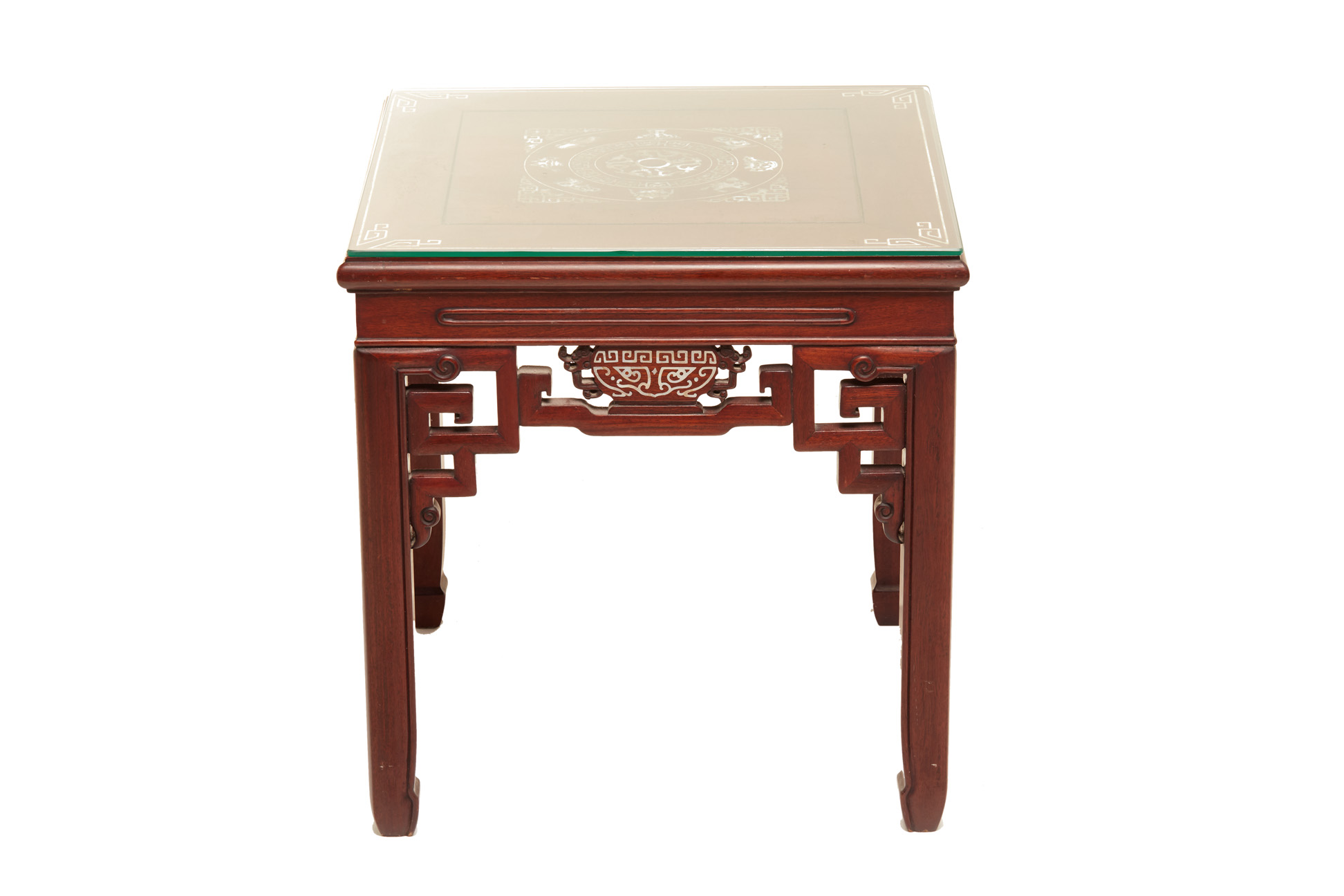 A SQUARE MOTHER OF PEARL AND BONE INLAID SIDE TABLE