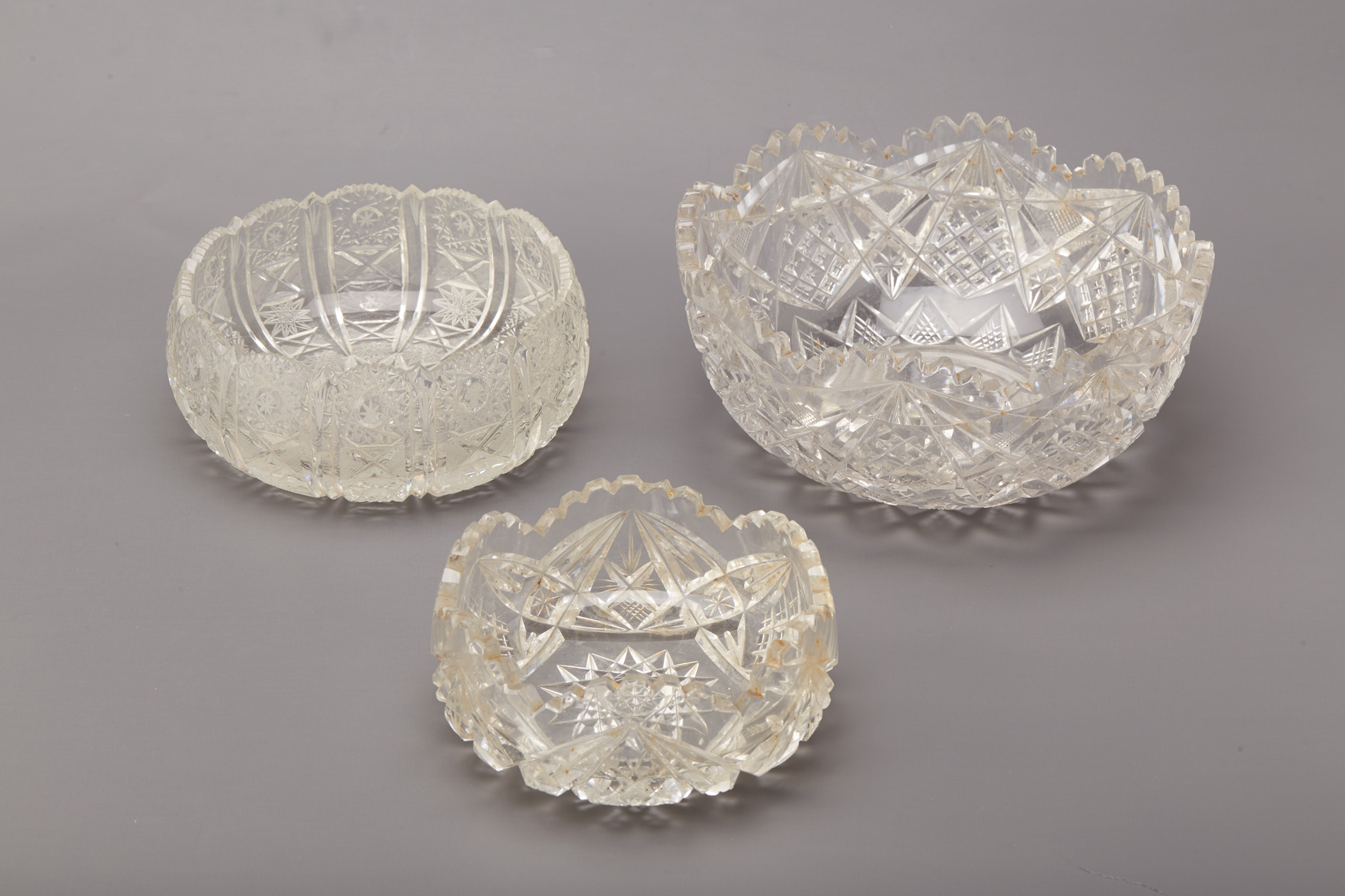 A GROUP OF THREE CUT GLASS BOWLS